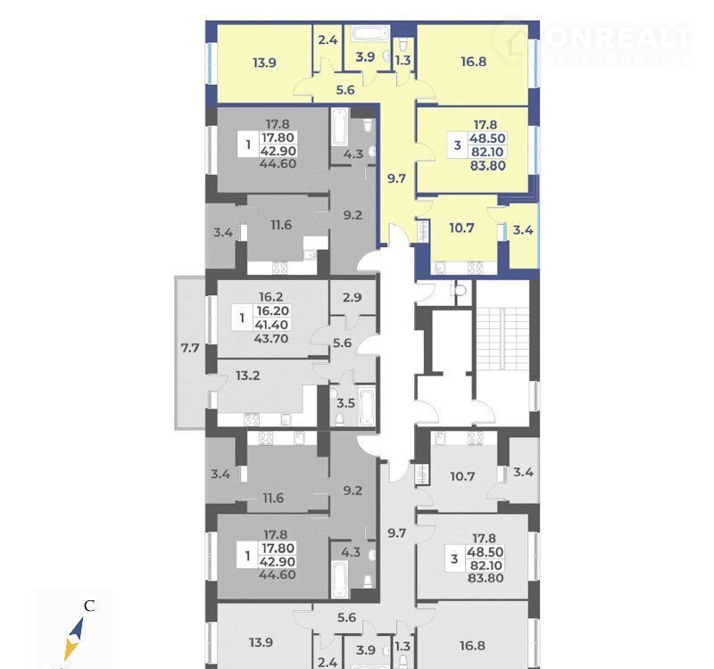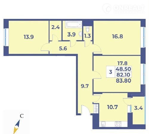 Общая площадь 83.8 м2