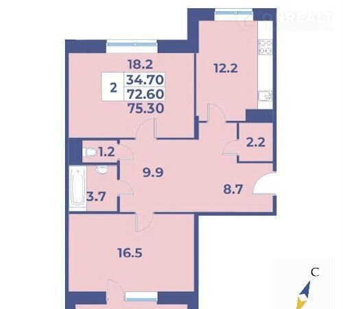 Общая площадь 75.3 м2