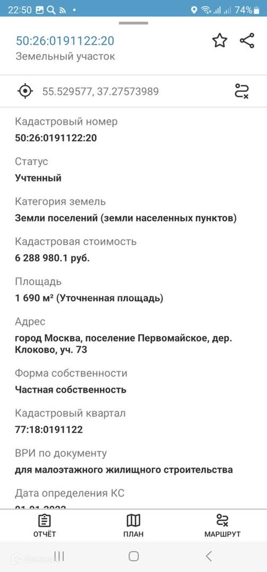 - кадастровый номер 50:26:0191122:20