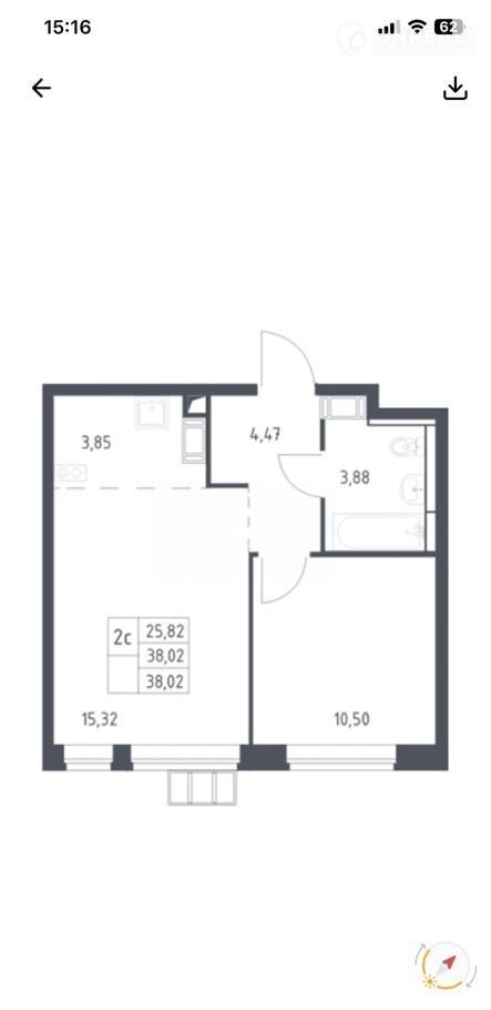 Общая площадь 38 м2