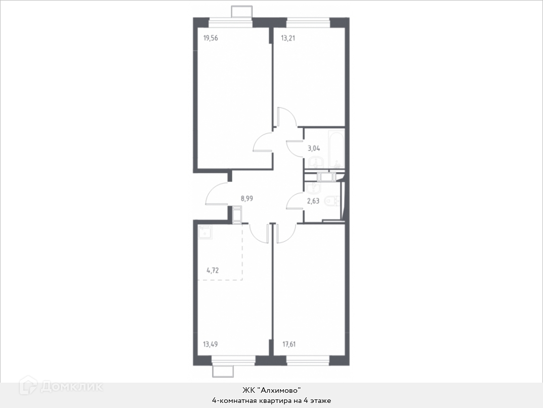 Продаю просторную 4-комн. квартиру с европланировкой с отделкой на 4 этаже в жилом комплексе комфорт-класса "Алхимово". Общая площадь: 83.25 кв.м., жилые комнаты 13.49, 17.61, 13.21 и 19.56 кв.м., суммарная площадь гостиной-столовой с кухонной зоной: 18.21 кв.м. Квартира - распашонка, без проходных комнат, из paзныx окон мoжнo yвидeть двop и yлицy. В квартире один раздельный санузел. Высота потолков 2.82 м. До станций метро «Улица Горчакова», «Бульвар адмирала Ушакова», «Улица Скобелевская», «Бунинская аллея» и «Улица Старокачаловская» можно доехать за 11-16 минут на общественном транспорте. (AQID01853300)