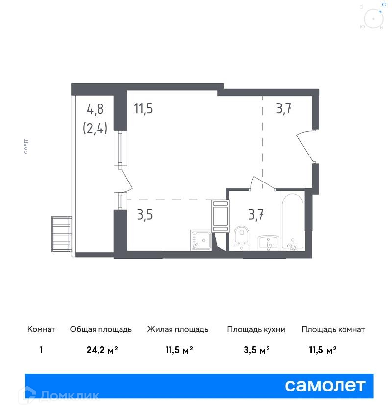 Общая площадь 24.2 м2