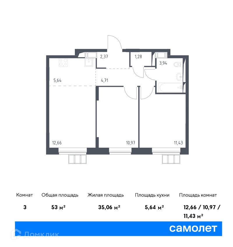 Общая площадь 53 м2