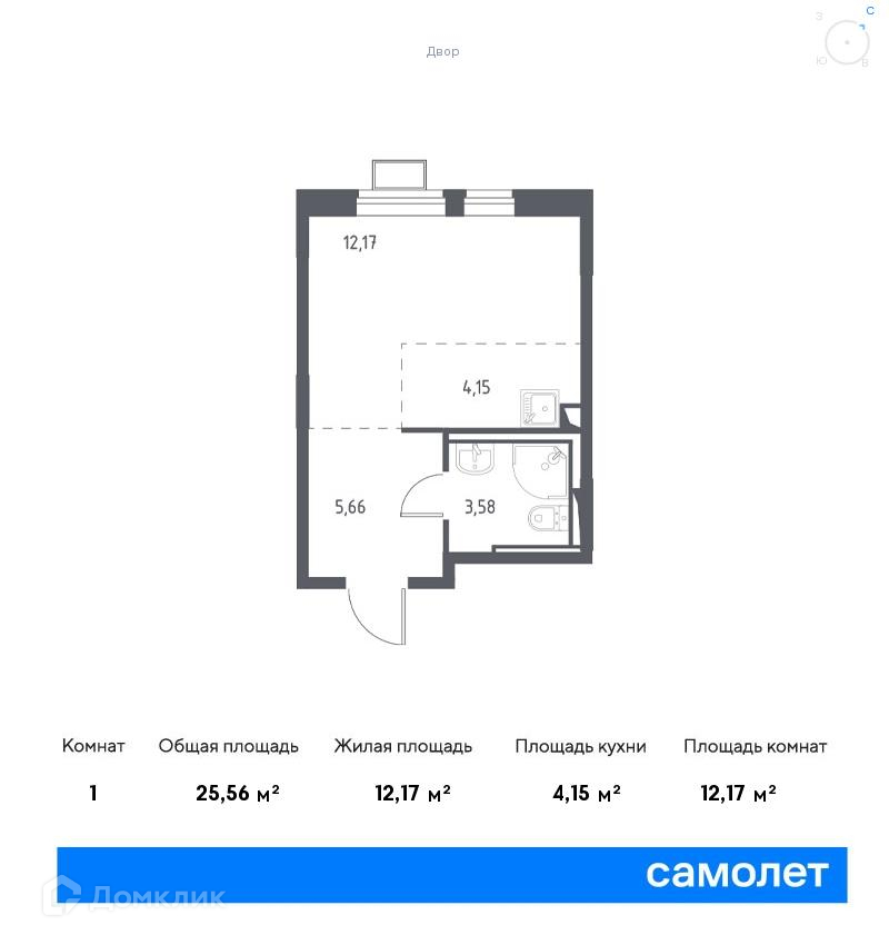 Общая площадь 25.56 м2