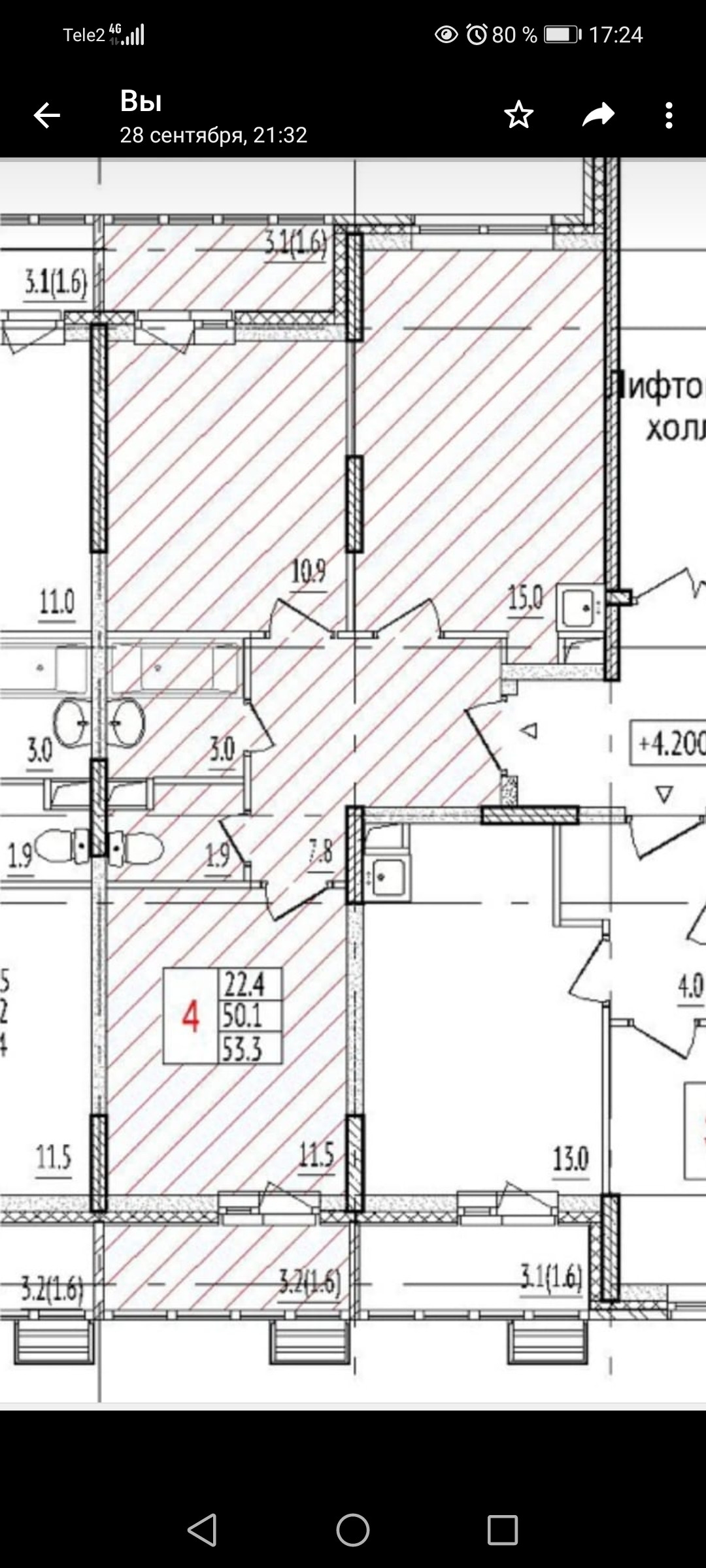 Общая площадь 54 м2