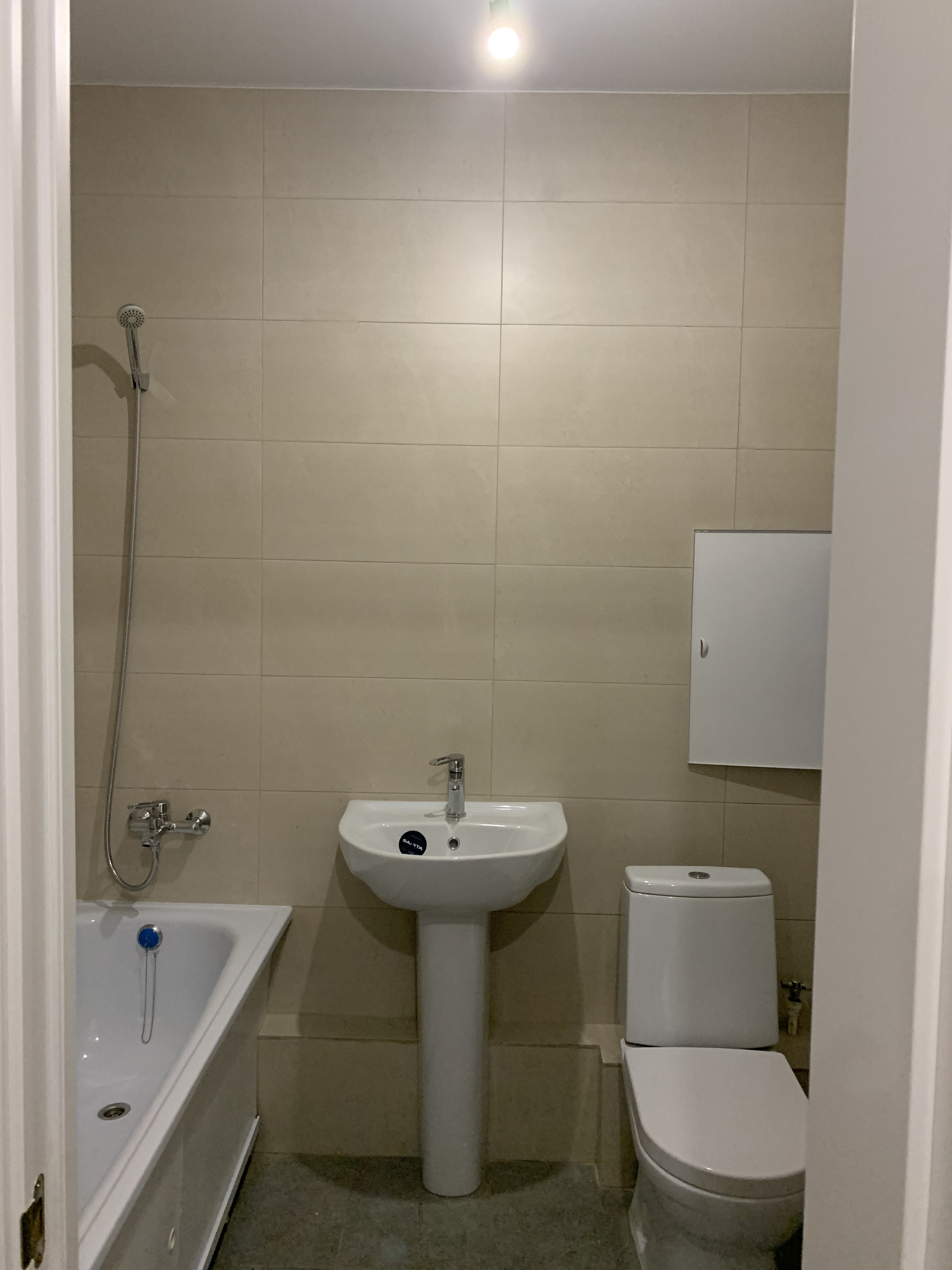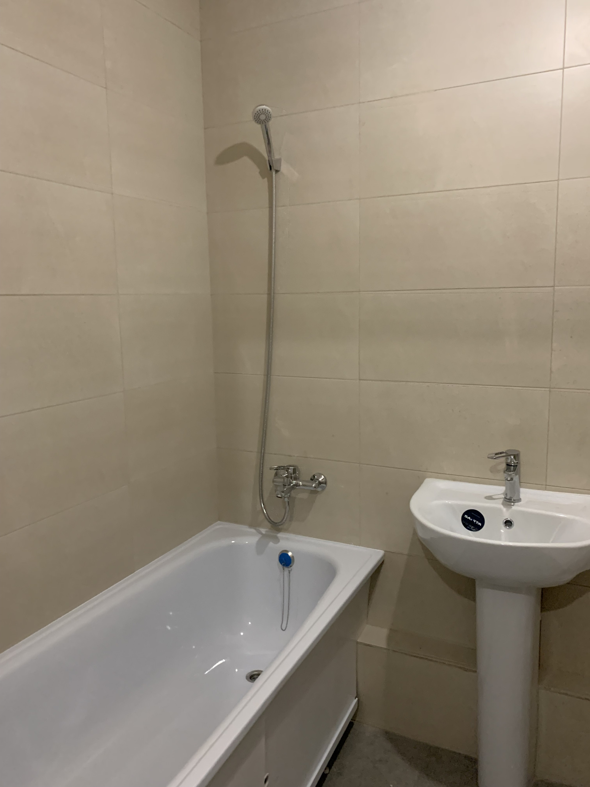 Ванна, санузел: • стены: отделка керамической плиткой; • потолки: натяжные или ГКЛ; • полы: отделка керамической плиткой (за исключением мест под ванной и иных скрытых мест); •