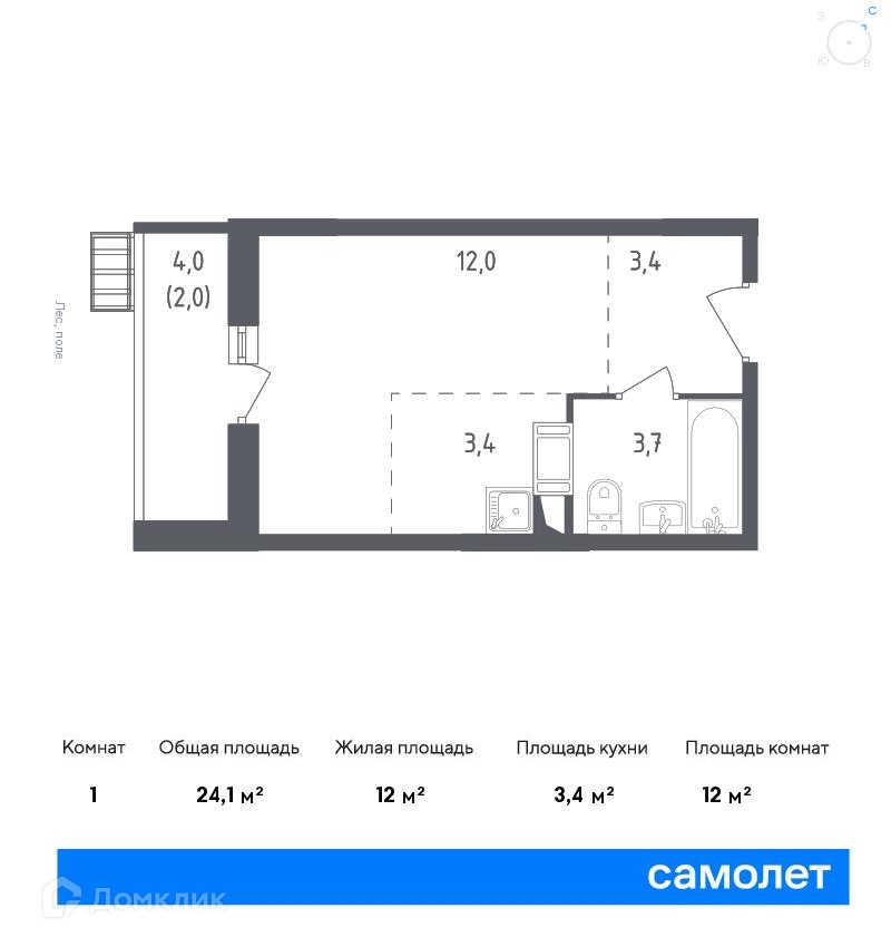 Общая площадь 24.1 м2