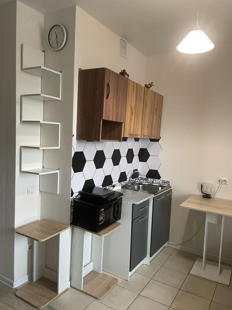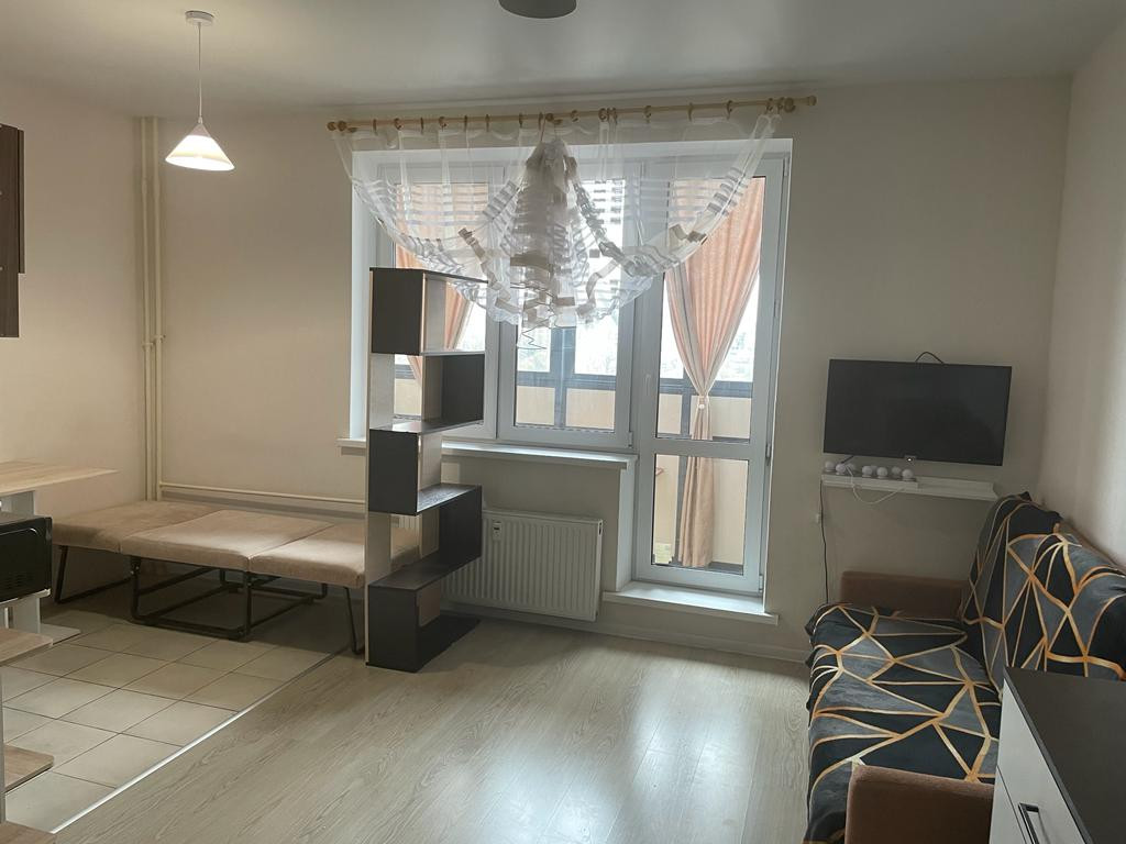 Продается меблированная студия на 8 эт. в сданном доме, корпус 2 ЖК Алхимово, площадь 23 м2 Большая застекления лоджия длиной 4,6 м!