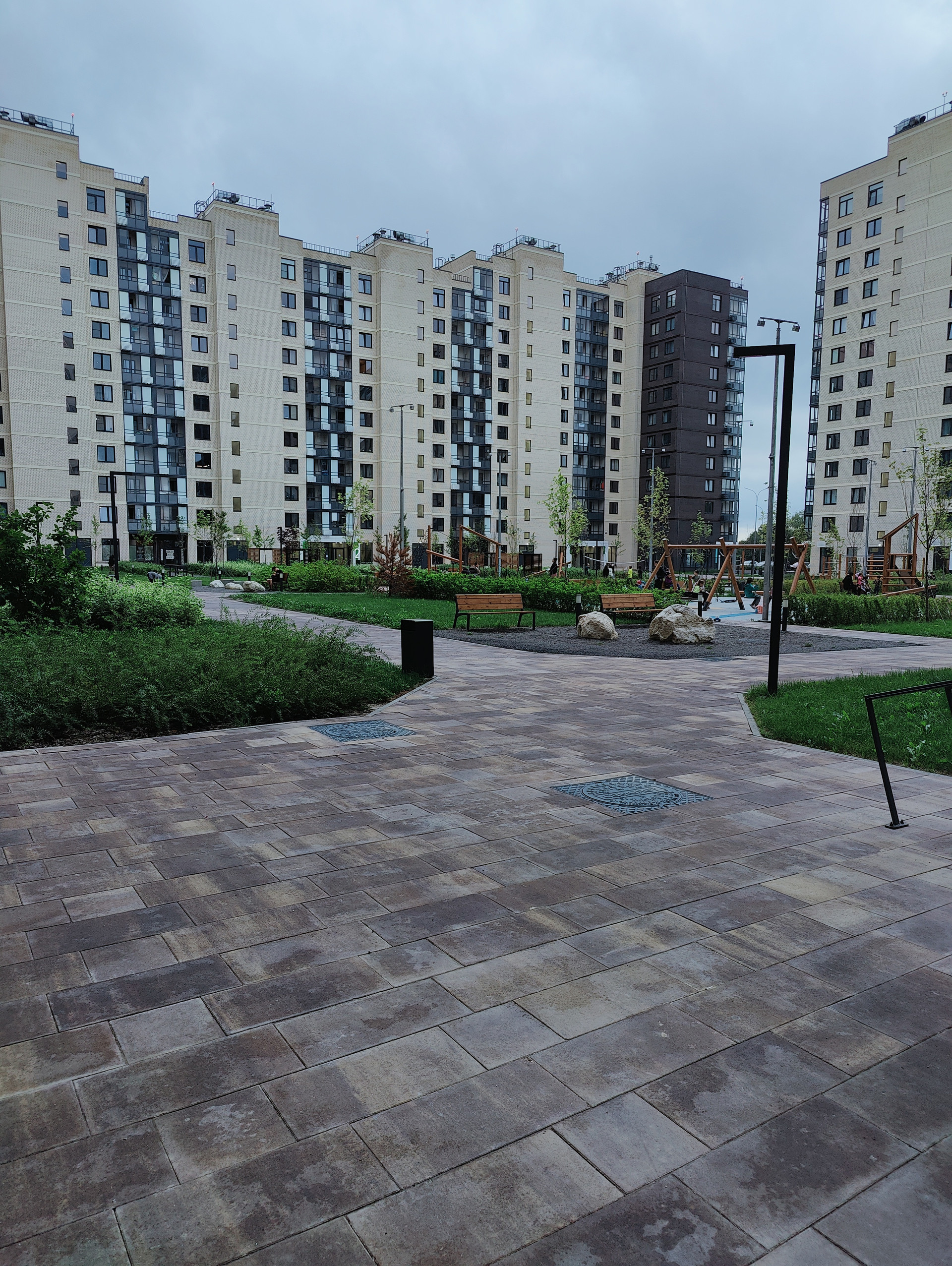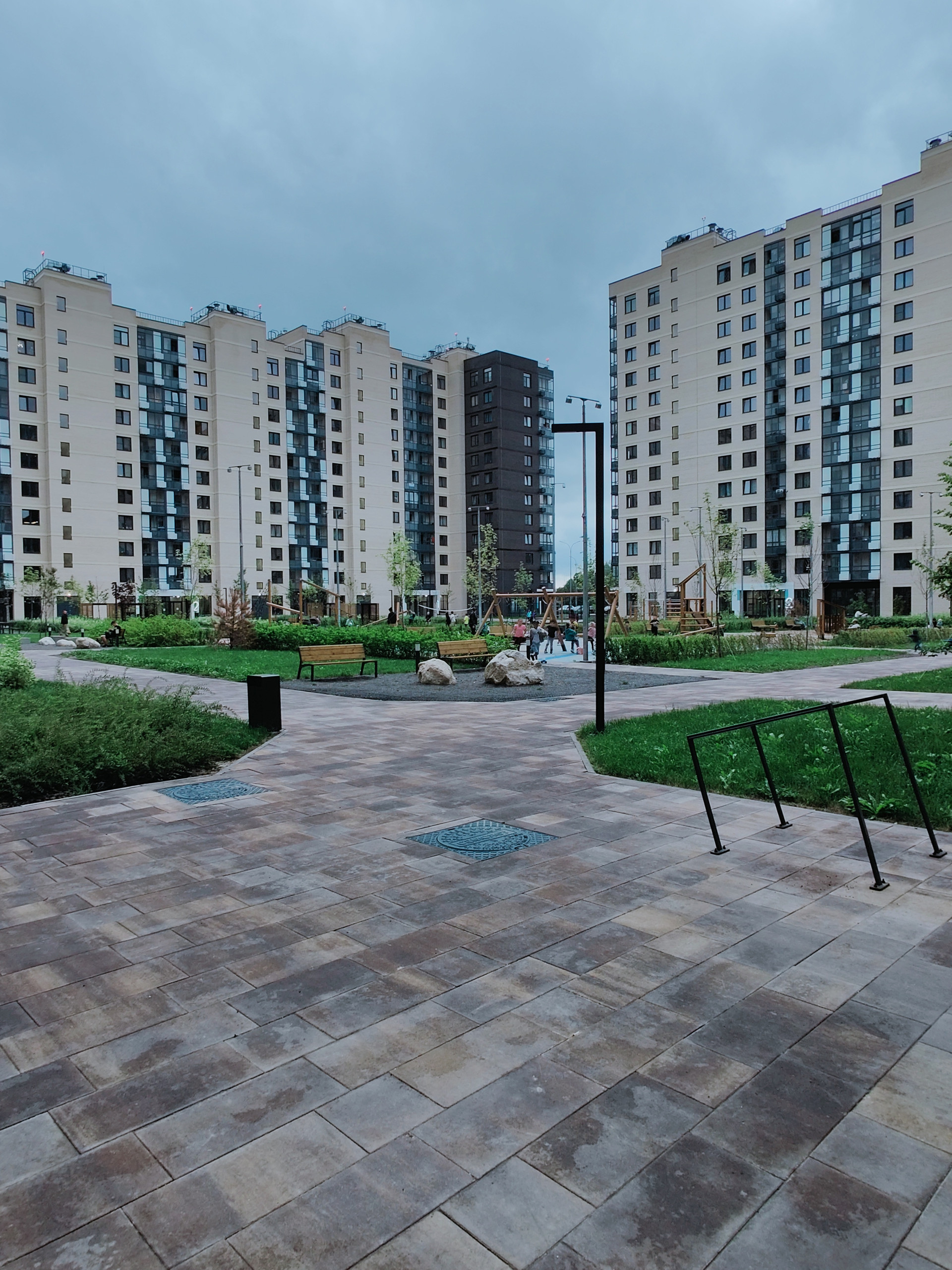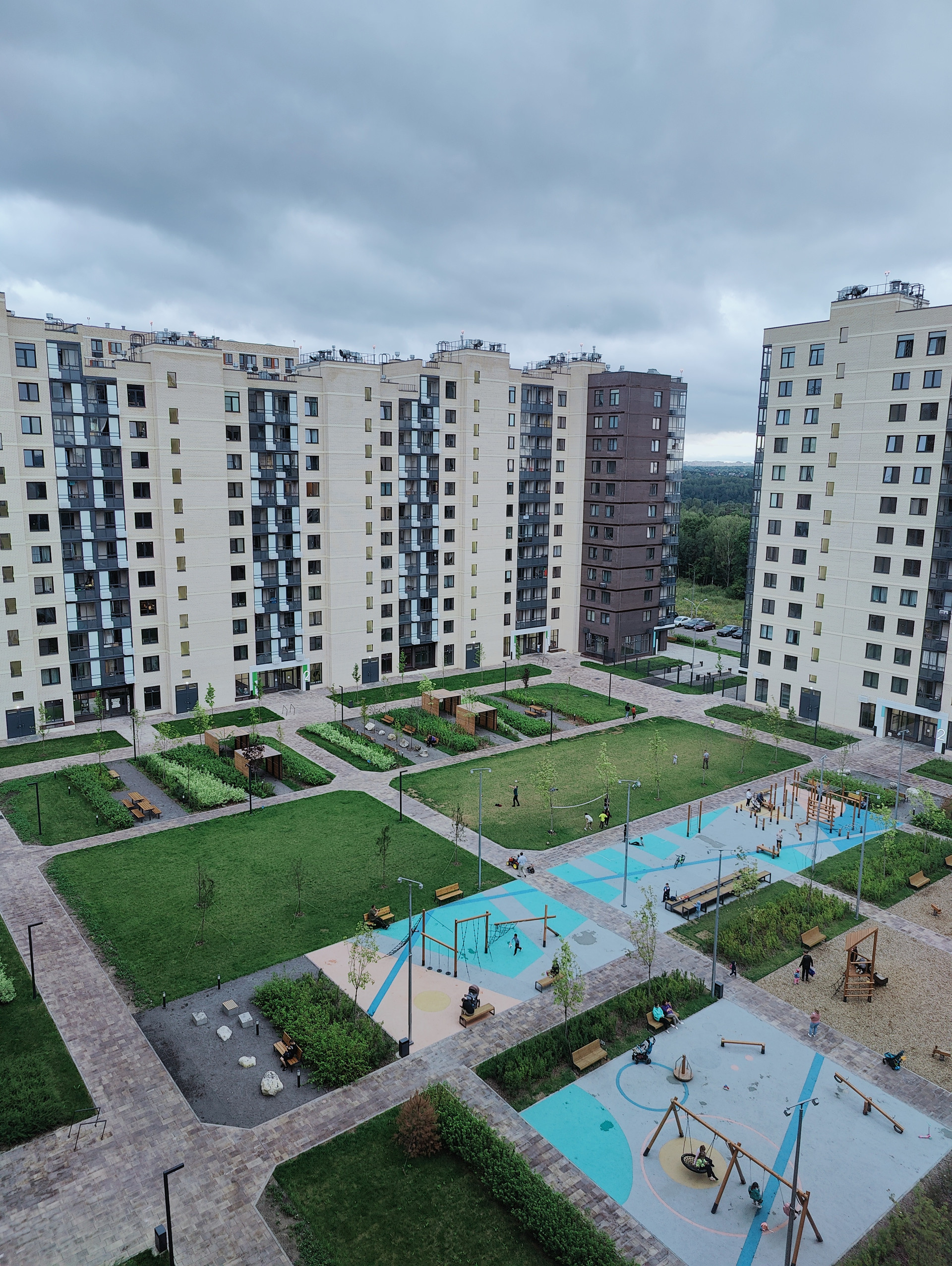 В зеленых дворах оборудованы детские и спортивные площадки.