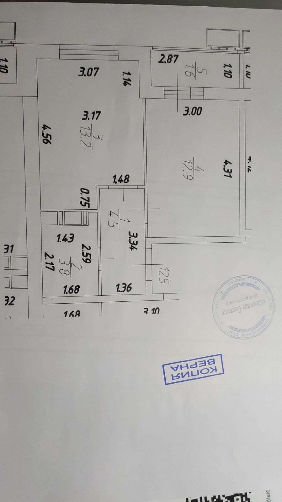Общая площадь 34.4 м2