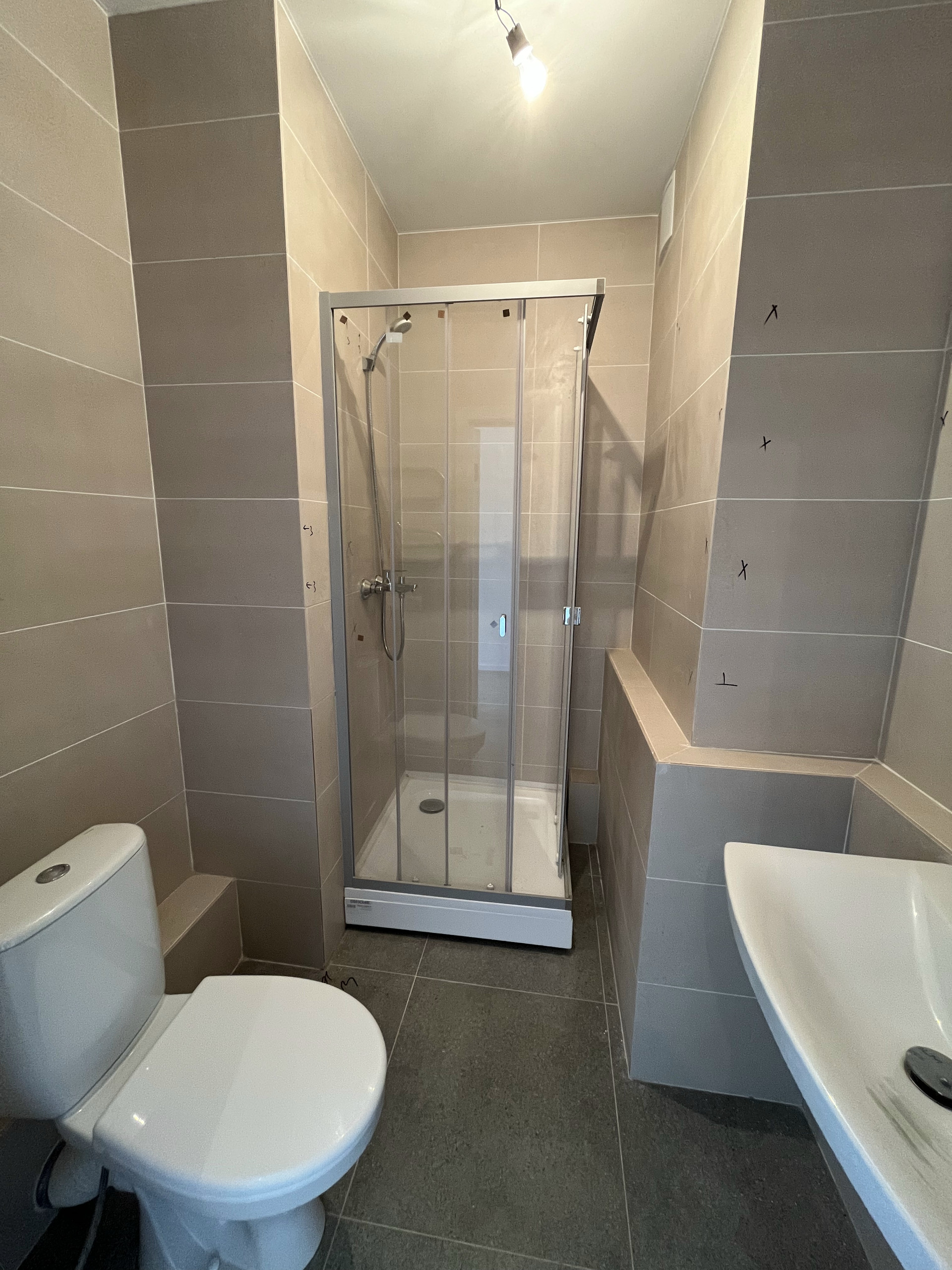 ВАННАЯ, САНУЗЕЛ: стены: отделка керамической плиткой; потолки: натяжные или ГКЛ; полы: отделка керамической плиткой столярные изделия: дверь; Установлена ванна, раковина, унитаз, смесители, а также приборы учета (счетчики) холодного и горячего водоснабжения; Отдельно выведено место под стиральную машинку. Также в квартире реализована система УМНОГО ДОМА: управление розетками, освещением и отоплением!