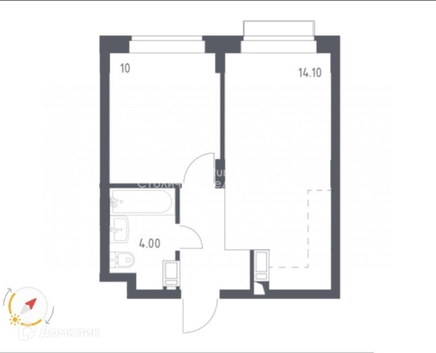 Общая площадь 34.1 м2