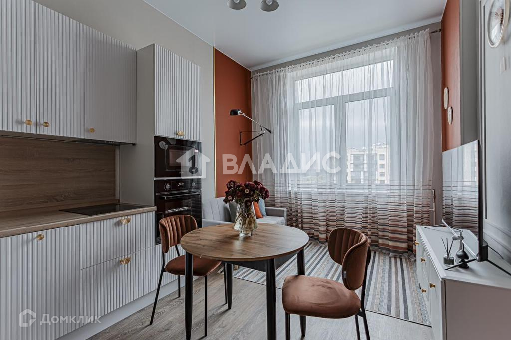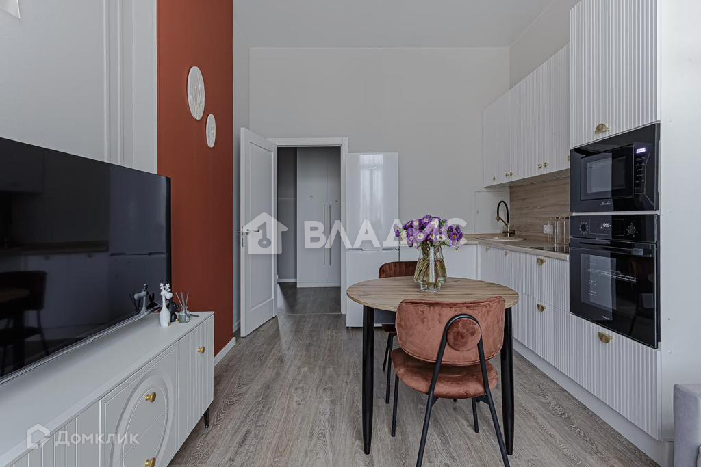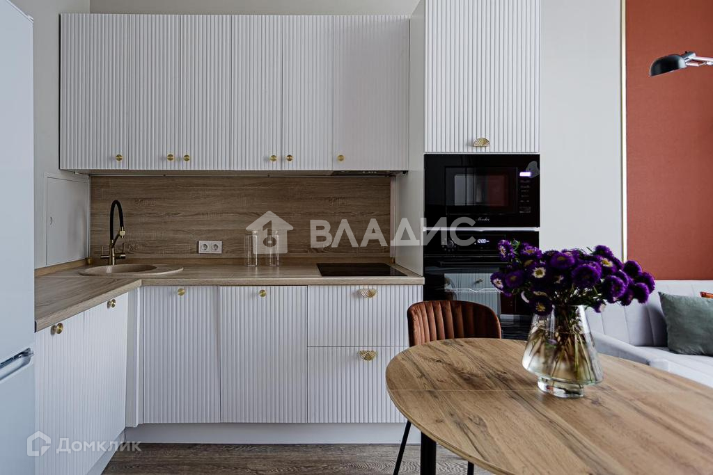 Зона для приготовления пищи, со встроенной бытовой техникой, в т.ч. индукционной варочной панелью, духовым шкафом, микроволновой печью, стиральной машиной, холодильником, посудомоечной машиной, встраиваемой вытяжкой, обеденной и зоной отдыха. Проведен интернет.В квартире установлена