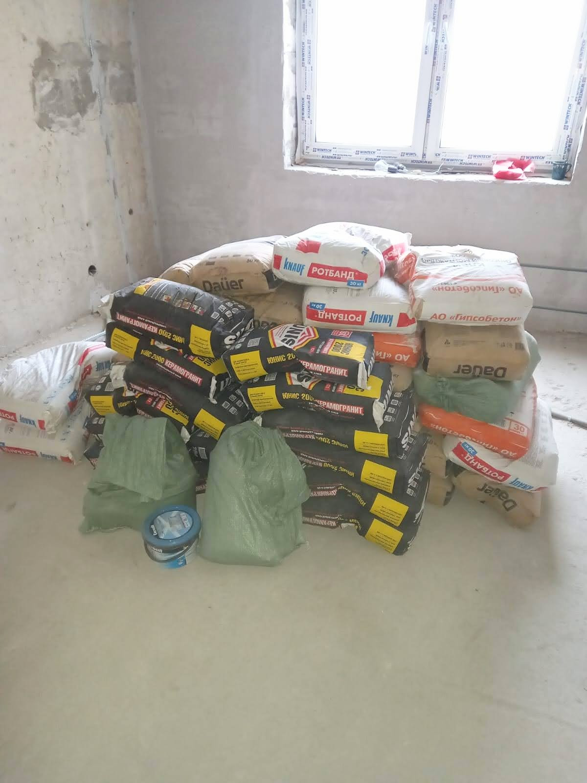 Приобретены материалы для черновой отделки, сухие смеси (входят в стоимость квартиры)