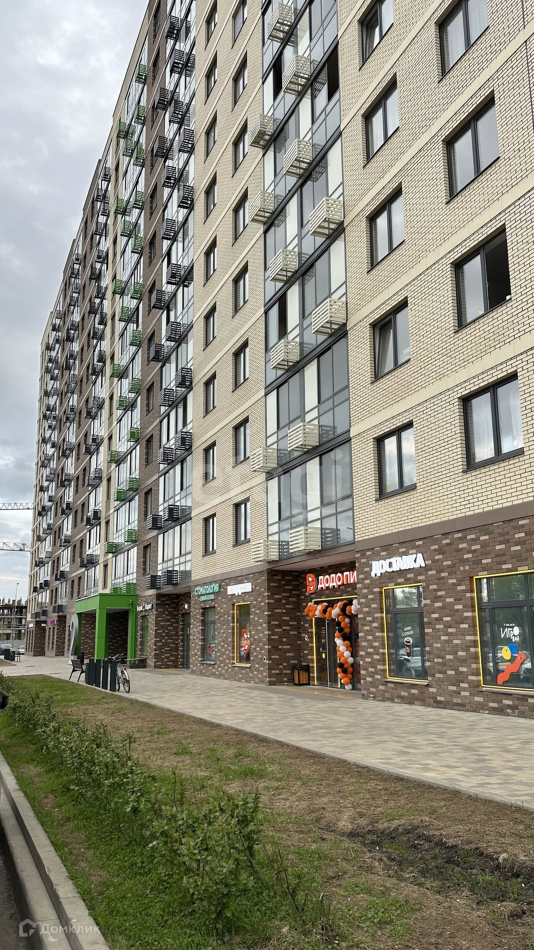 Монолитно-кирпичный дом высотой 13 этажей. Фасад из кирпича благодаря которому сохранено тепло внутри квартиры. На фасадах установлены специальные корзины под кондиционер.