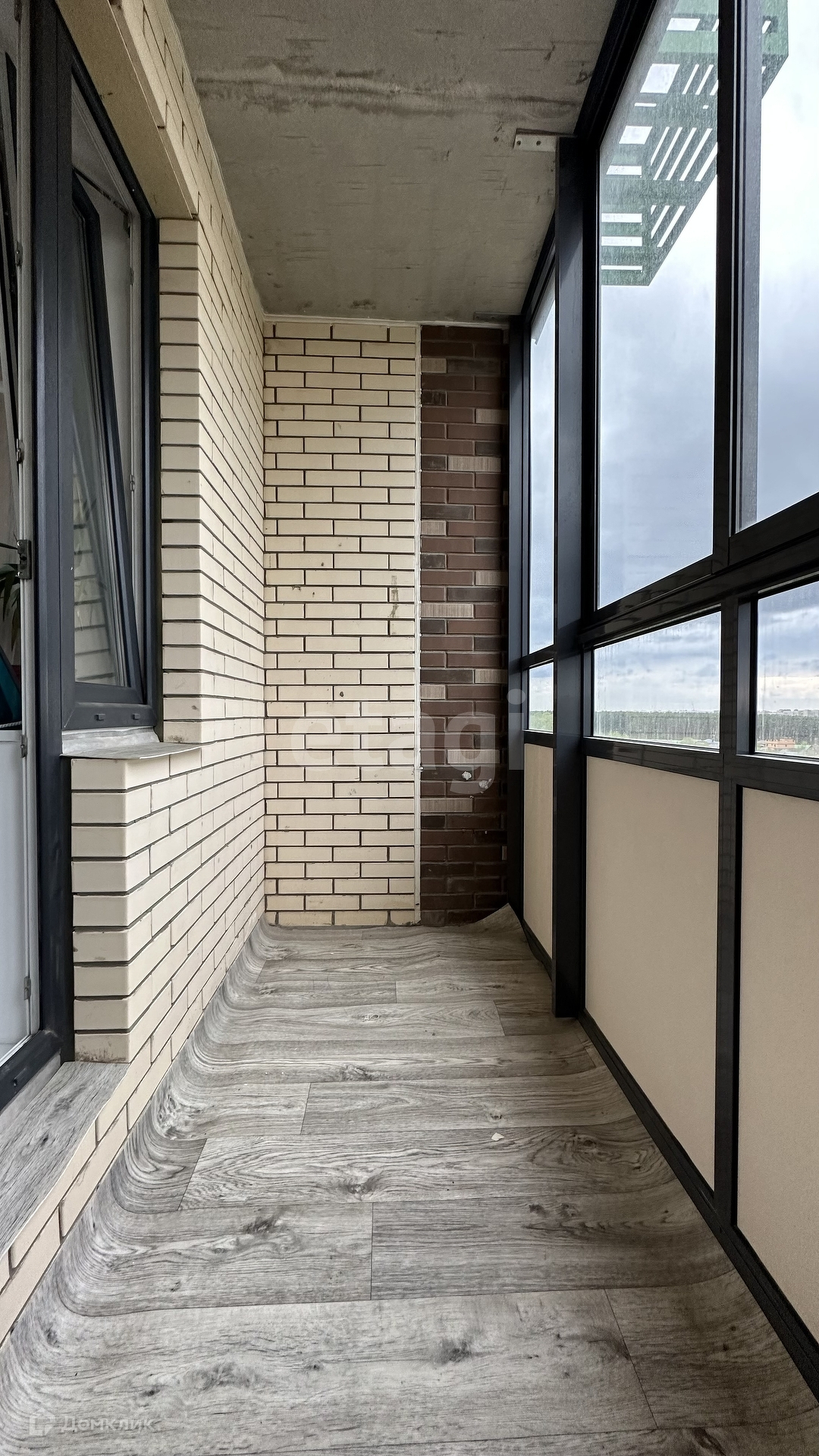 Застекленная широкая лоджия.