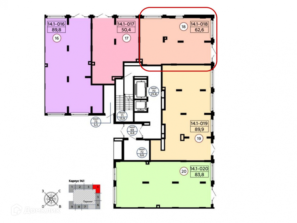 Общая площадь 62.6 м2