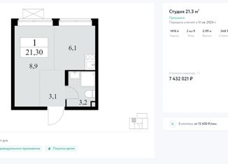Квартира на продажу студия, 20.6 м2, жилой комплекс Прокшино, 8к2