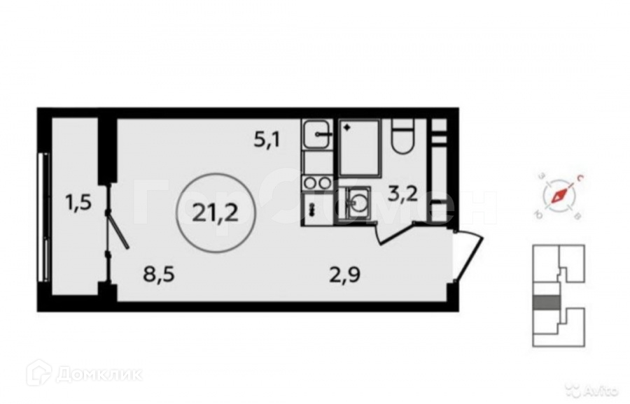 Общая площадь 21.3 м2