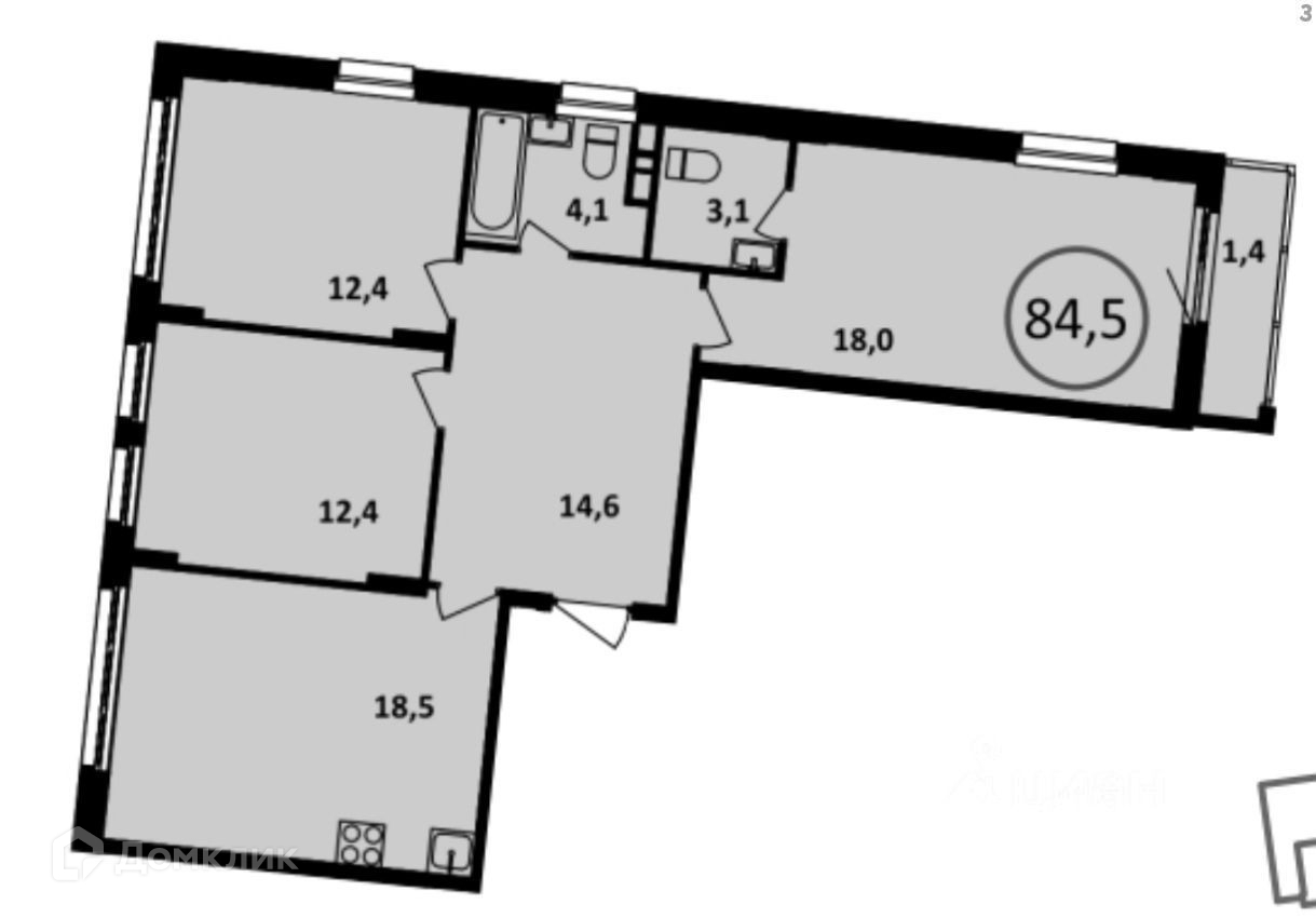 3-комнатная квартира, 84.5 м2, этаж 13 / 14, на продажу в поселении Сосенском, проспект Магеллана, 4