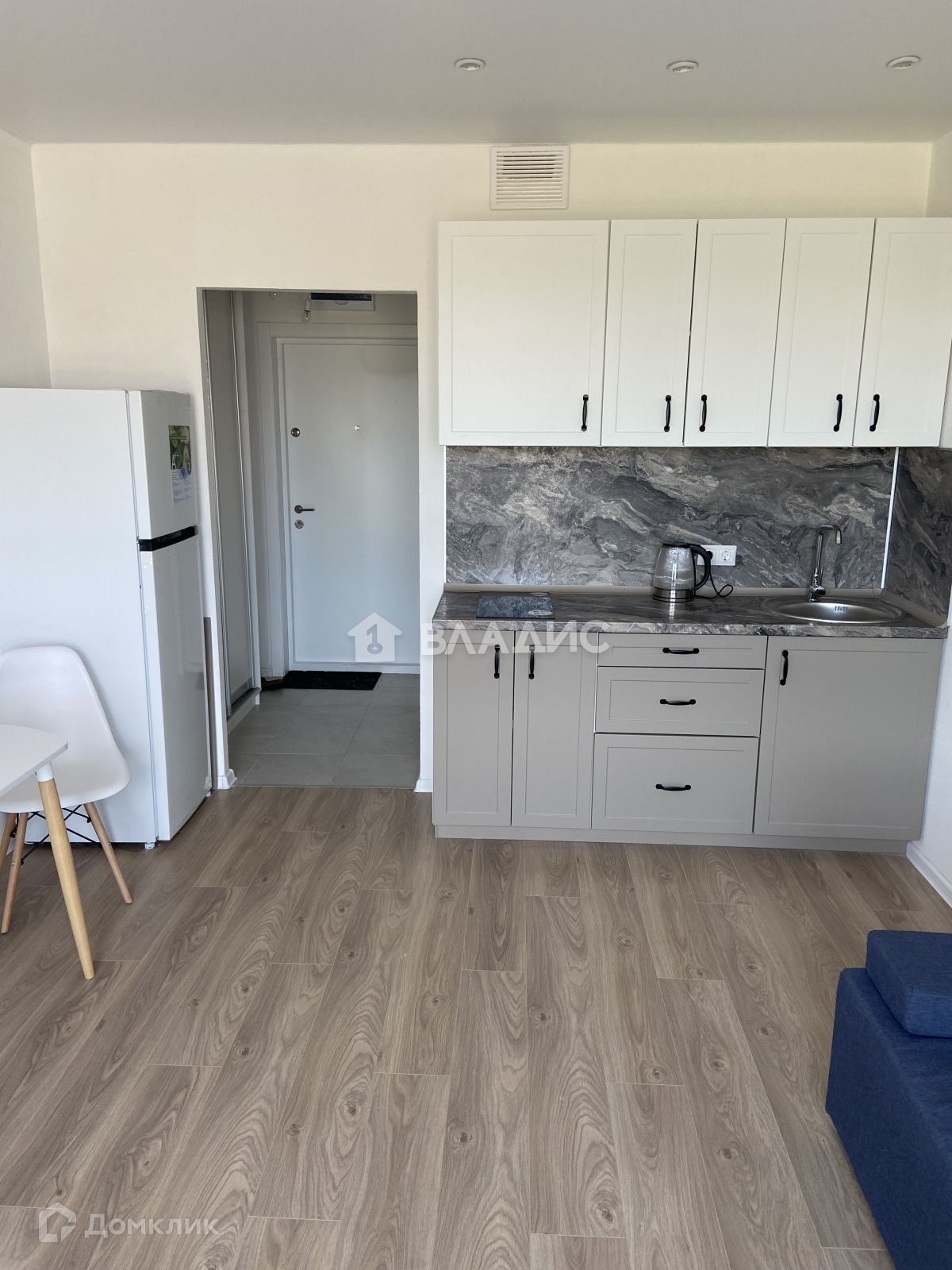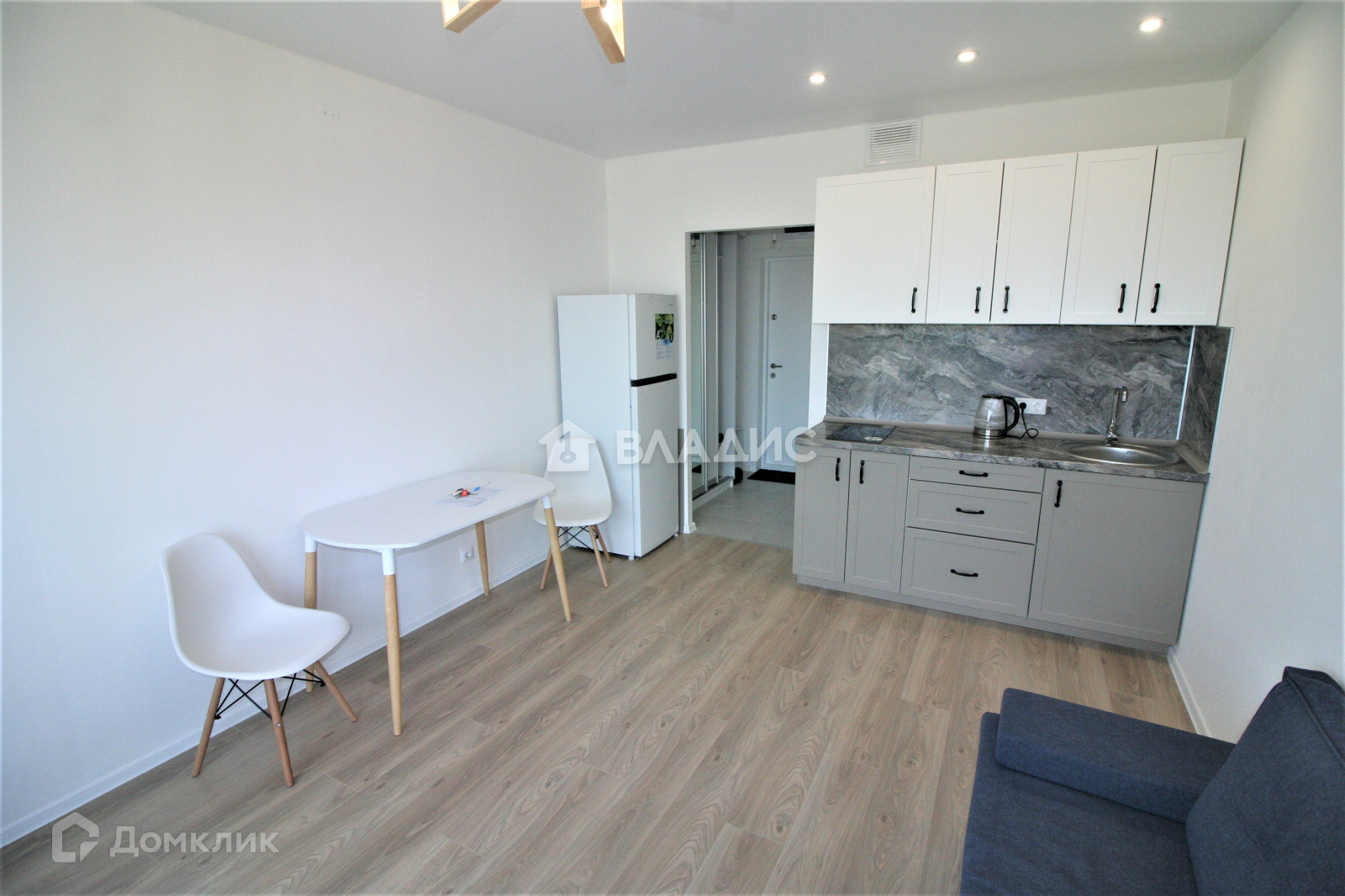 Полная чистовая отделка: ламинат, обои под покраску, подоконники, плинтусы, натяжной потолок с выводами под светильники, розетки и выключатели, плитка в мокрых зонах, сантехника, большие окна. Студия полностью мебелирована установлен кухонный гарнитур с техникой. Никто не проживал.