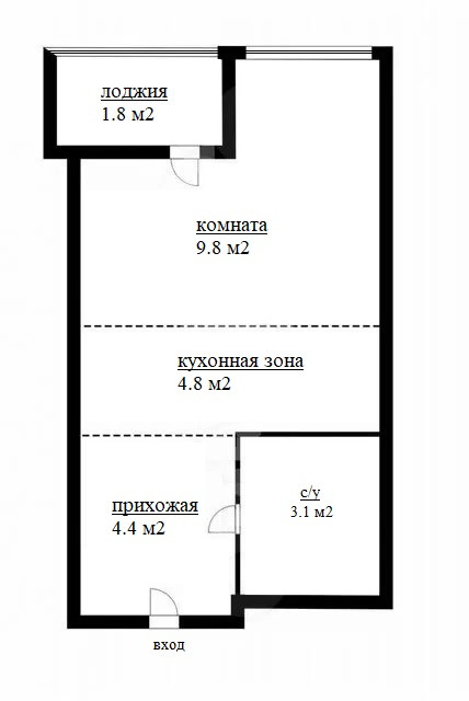 Жилая площадь 9.8 м2