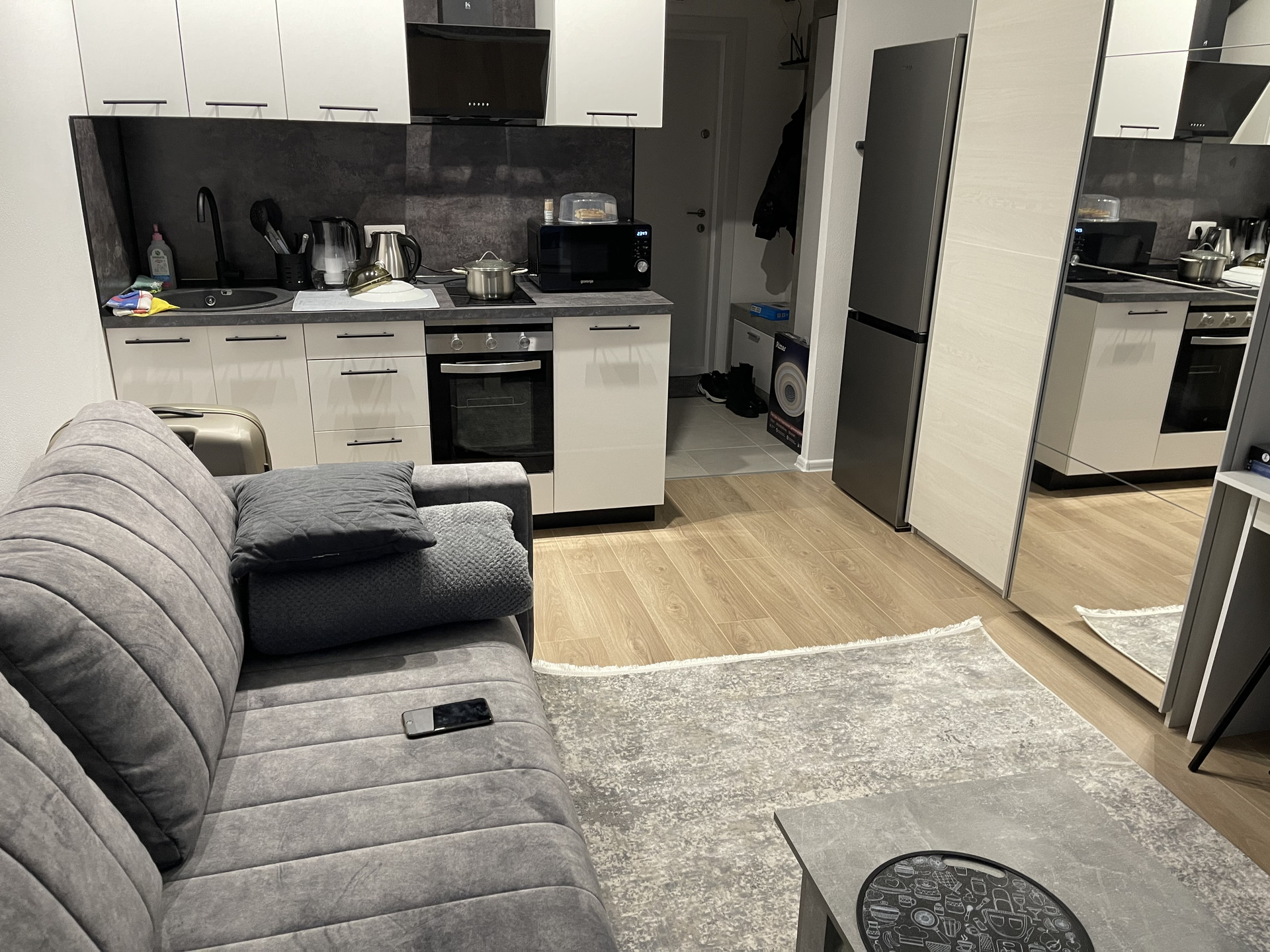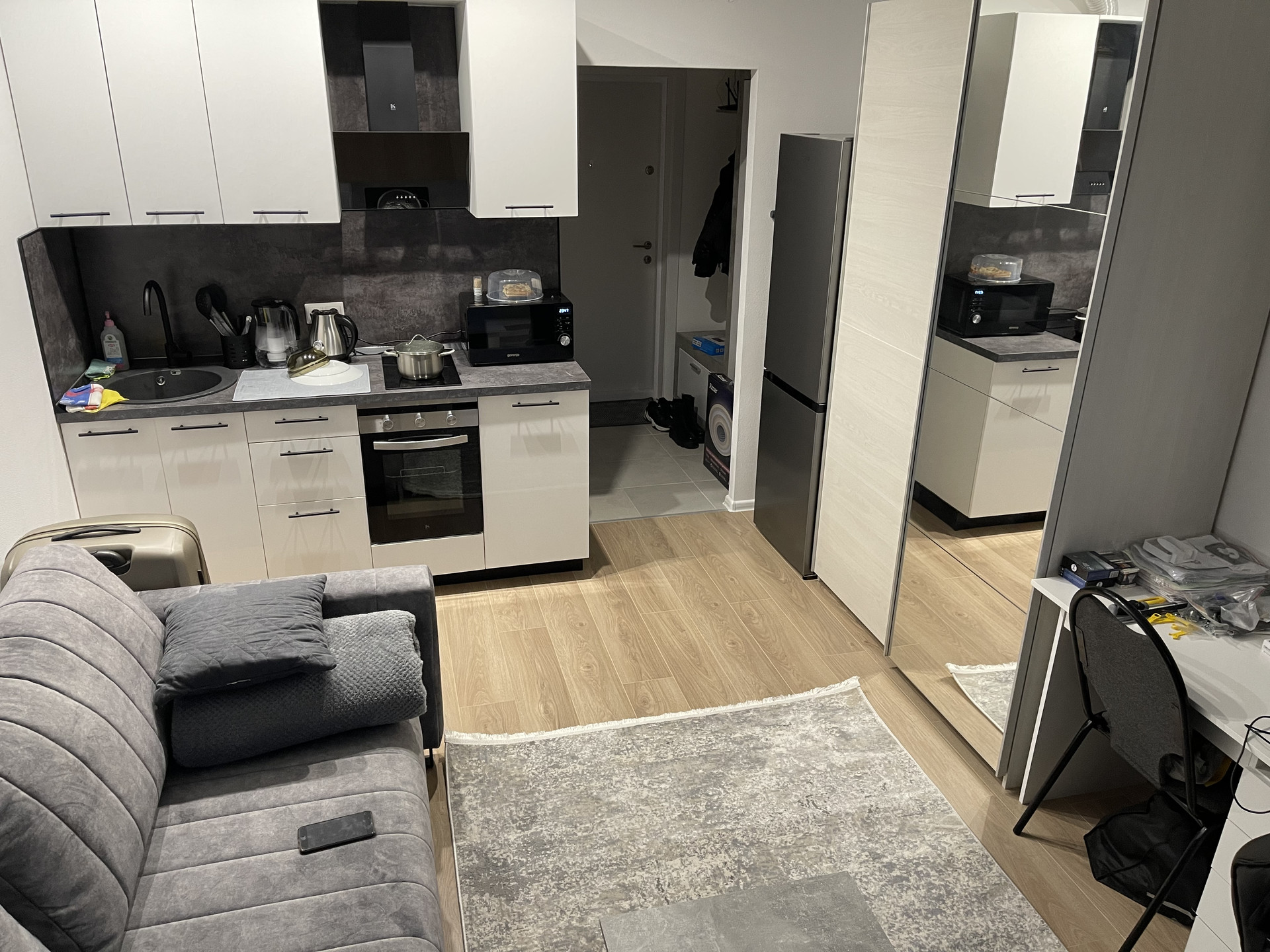 Продаю светлую студию, вид из окон на центральную аллею. Полностью укомплектована мебелью и бытовой техникой, все новое, функционирует. 1 взрослый собственник, свободная продажа. Показываю по договоренности.