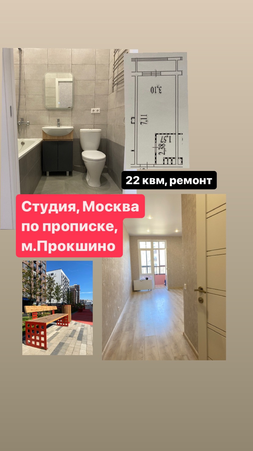 Отличная студия с московской пропиской. Метро Прокшино в пешей доступности, район жилой и уютный.