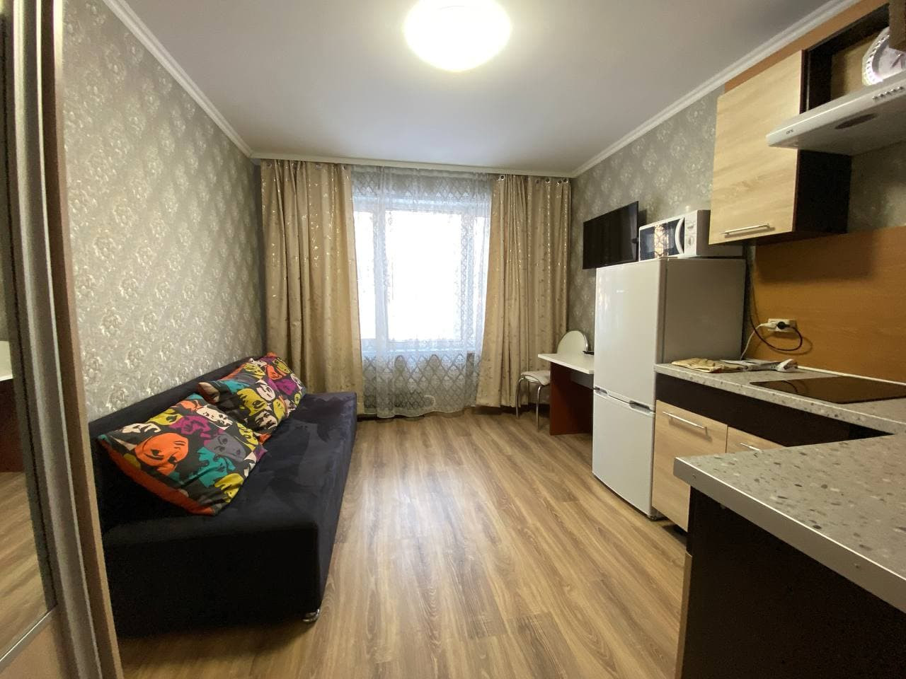 Фото реальные, в конце видеоряда пример отремонтированной и обставленной студии. Чистовой качественный ремонт в холле входит в стоимость студии