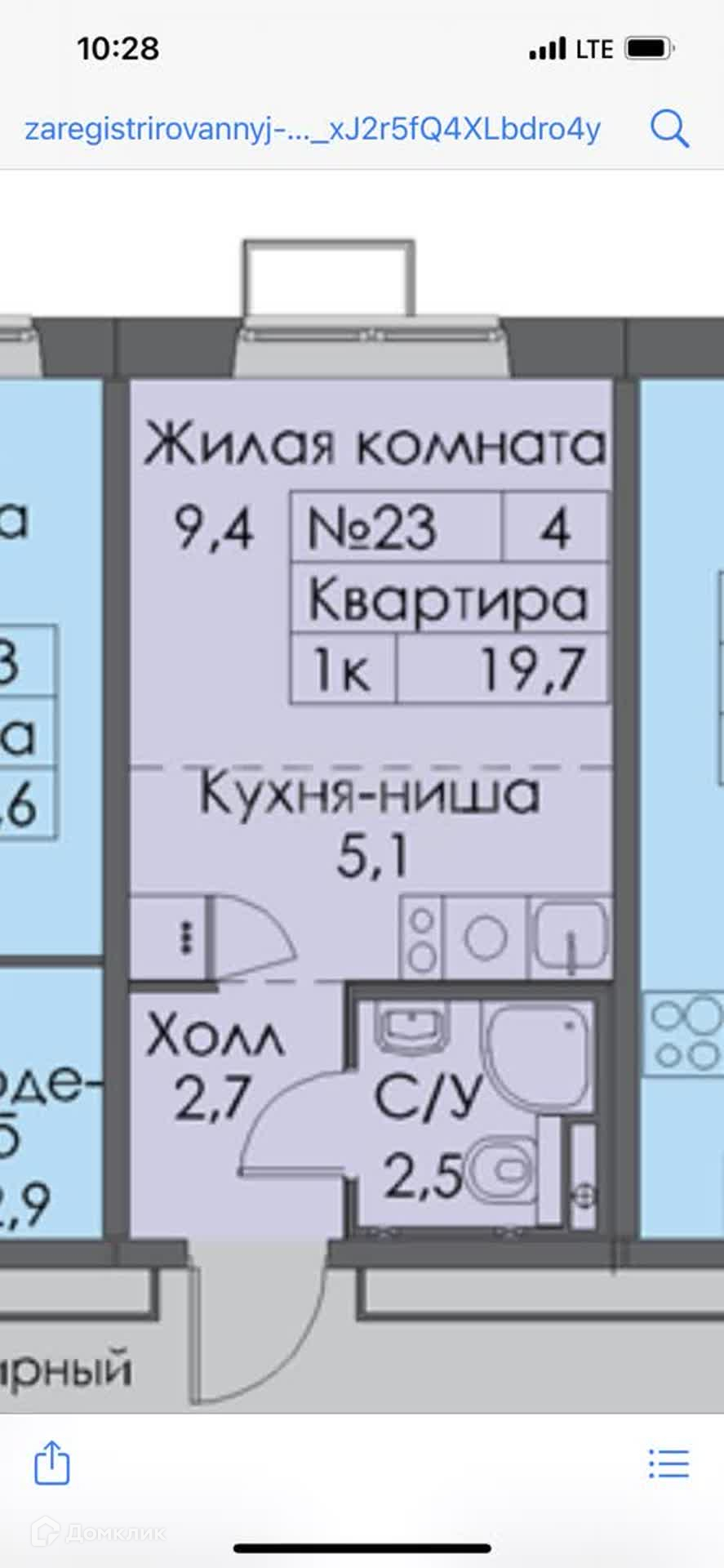 Общая площадь 19.8 м2