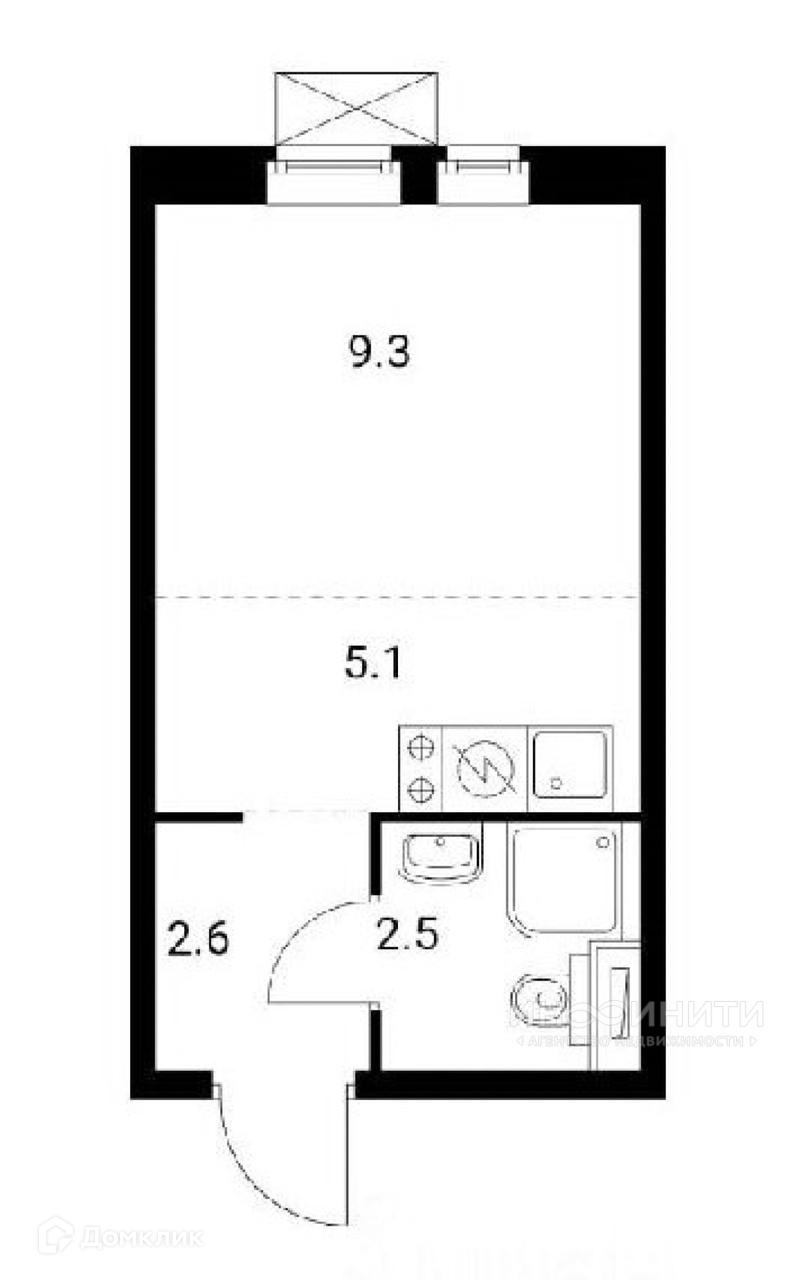 Общая площадь 19.5 м2
