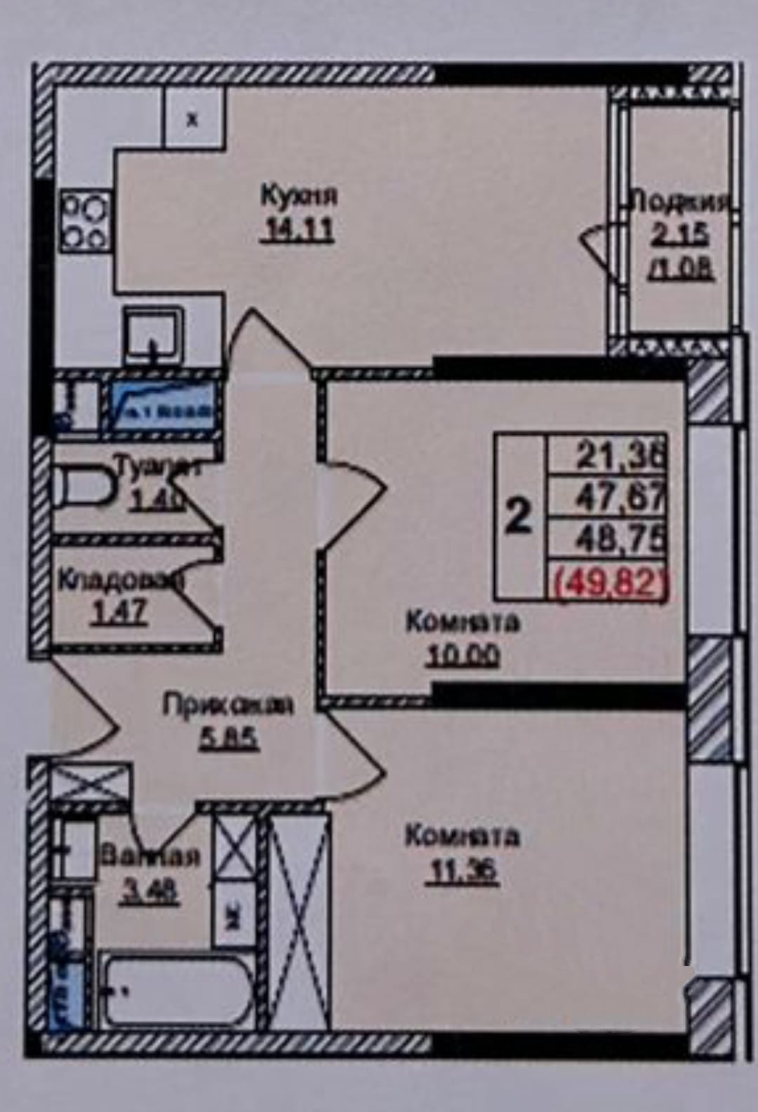 Общая площадь 47.7 м2
