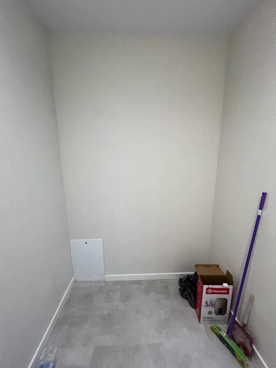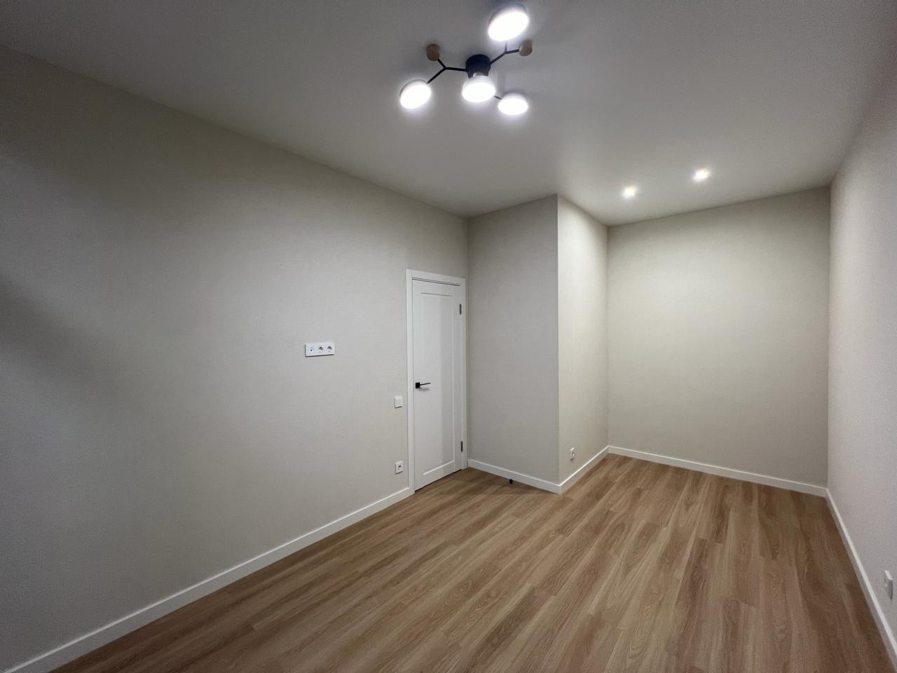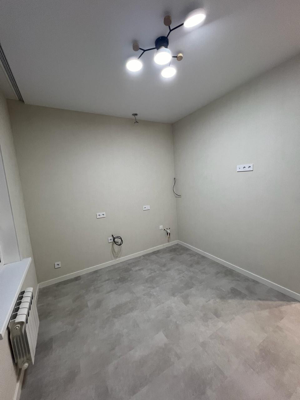- все стены выровнены, поклеены обои нейтральных пастельных тонов;