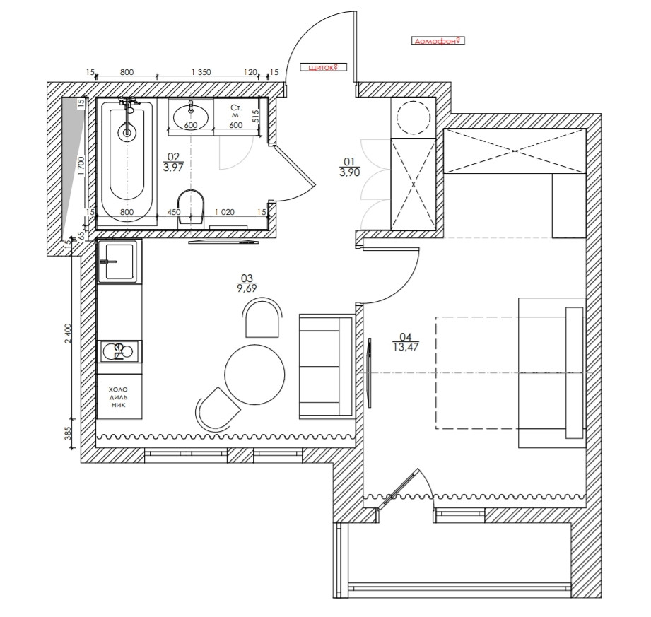 Площадь кухни 9.7 м2