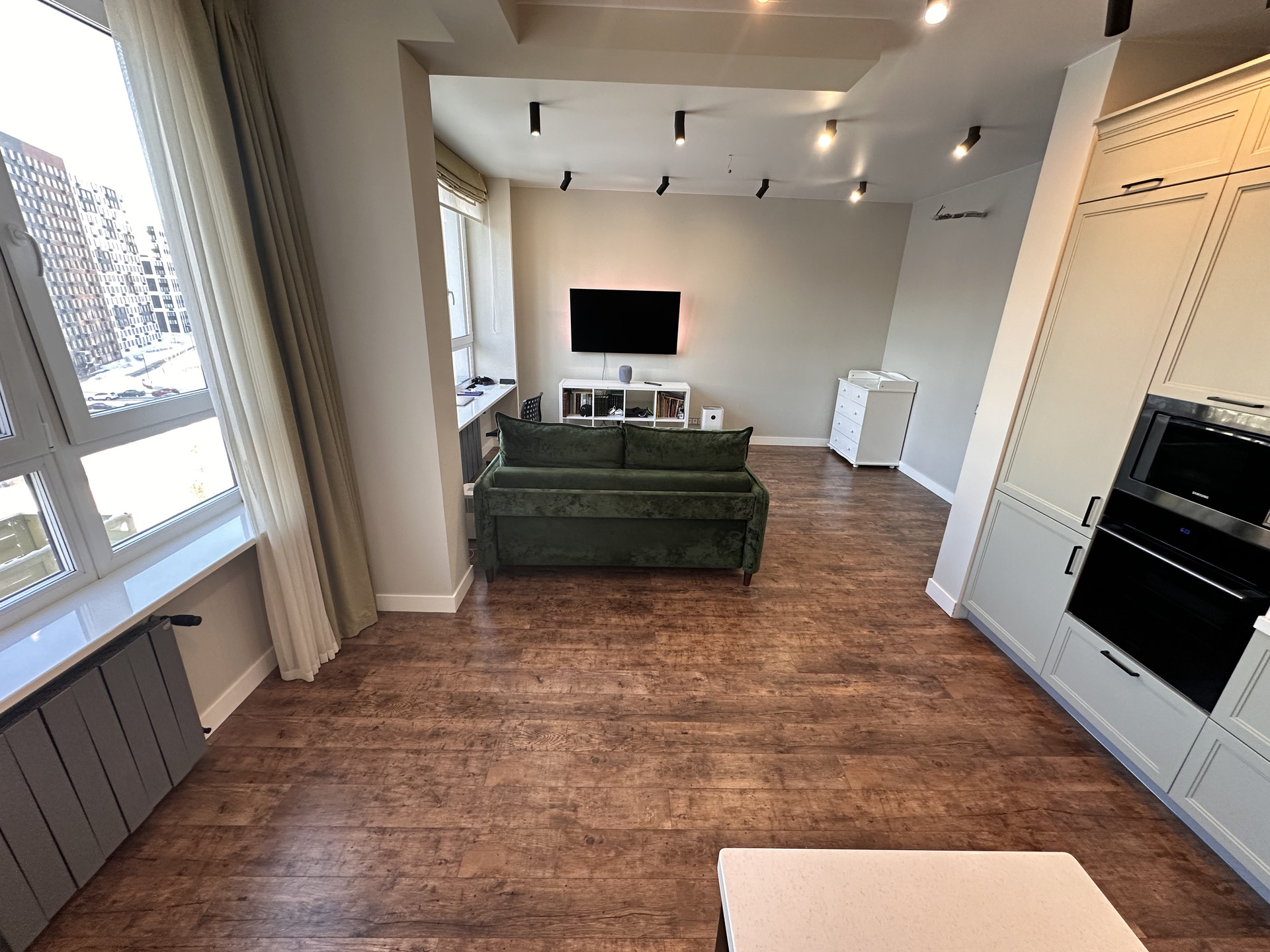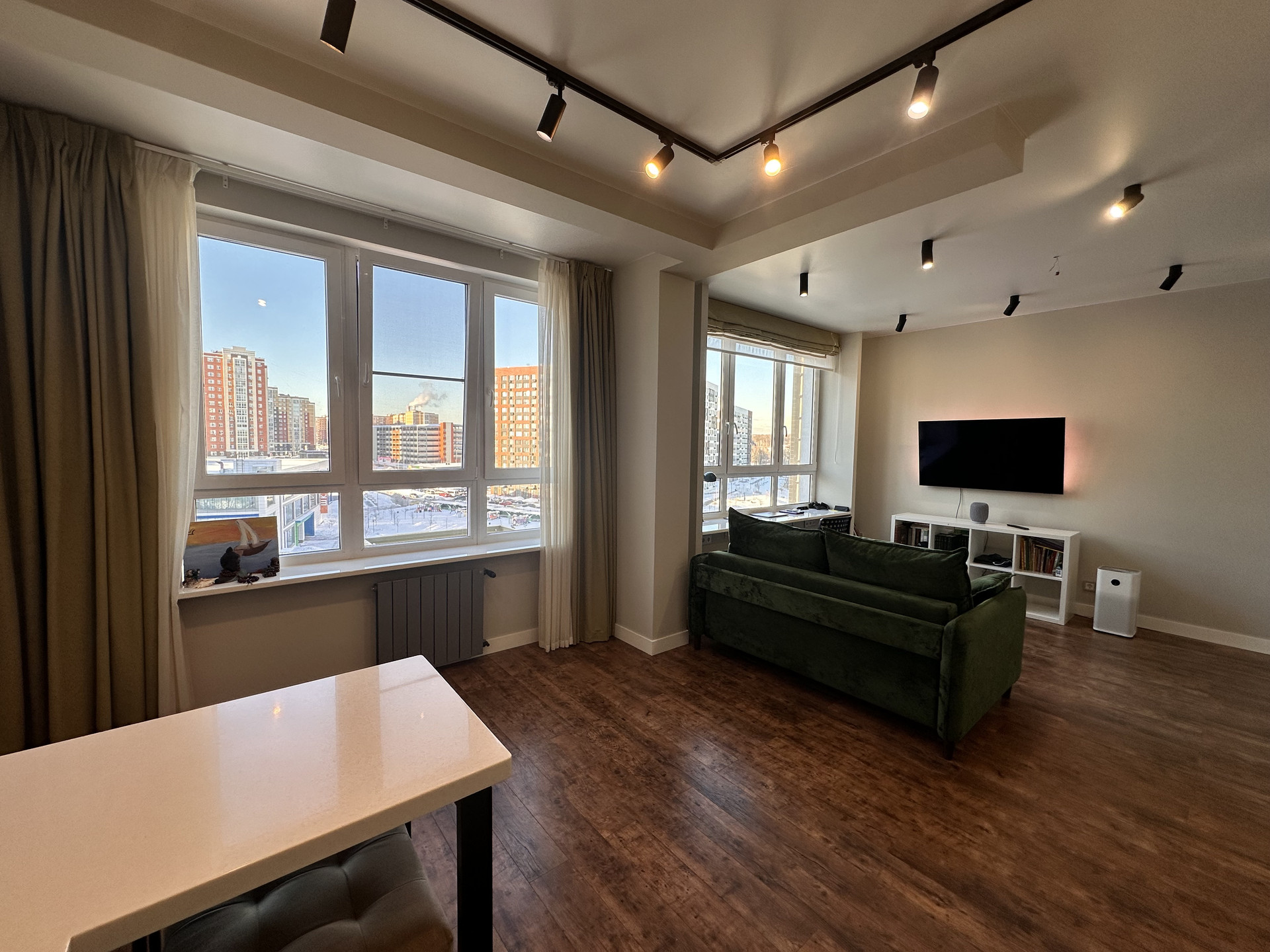 Отличный, высококачественный ремонт «для себя», хорошие материалы, продуманная инженерия. Квартира укомплектована всей необходимой техникой, заезжай и живи.