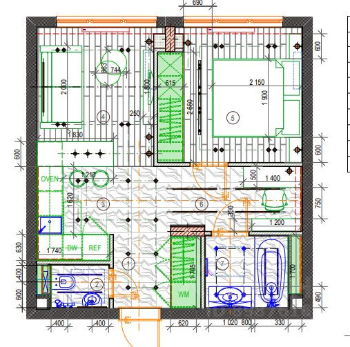 Встроенная кухня, техника: посудомоечная машина, холодильник, духовой шкаф,