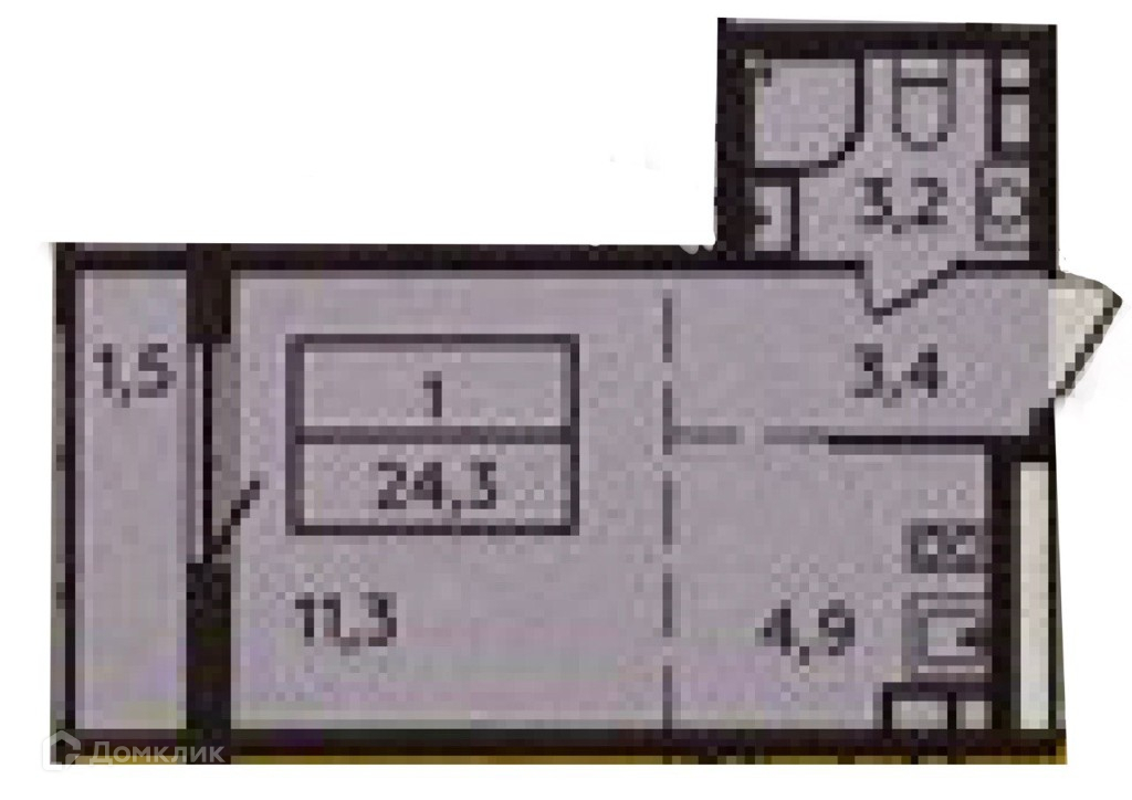 Общая площадь 24.3 м2