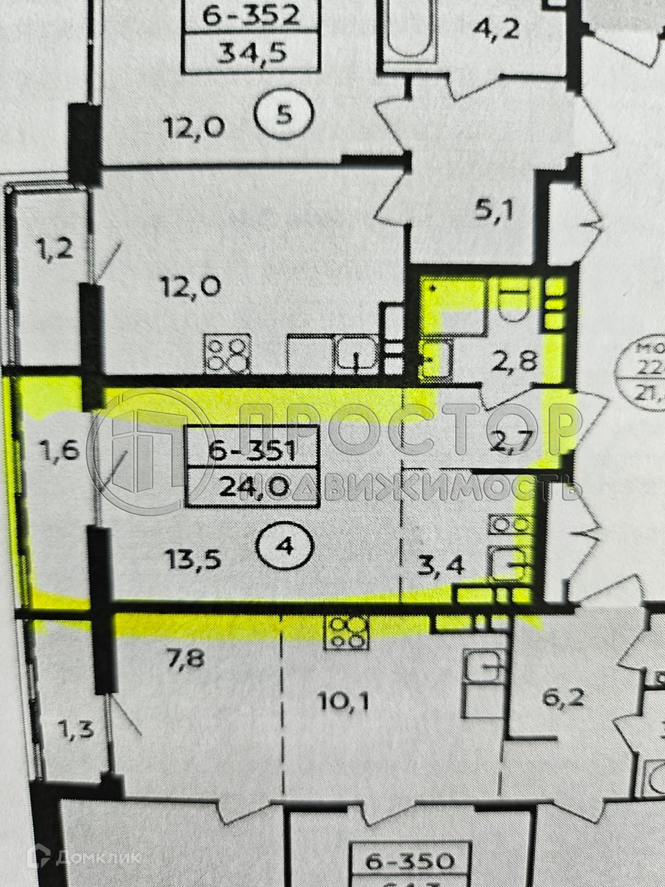 Общая площадь 24 м2