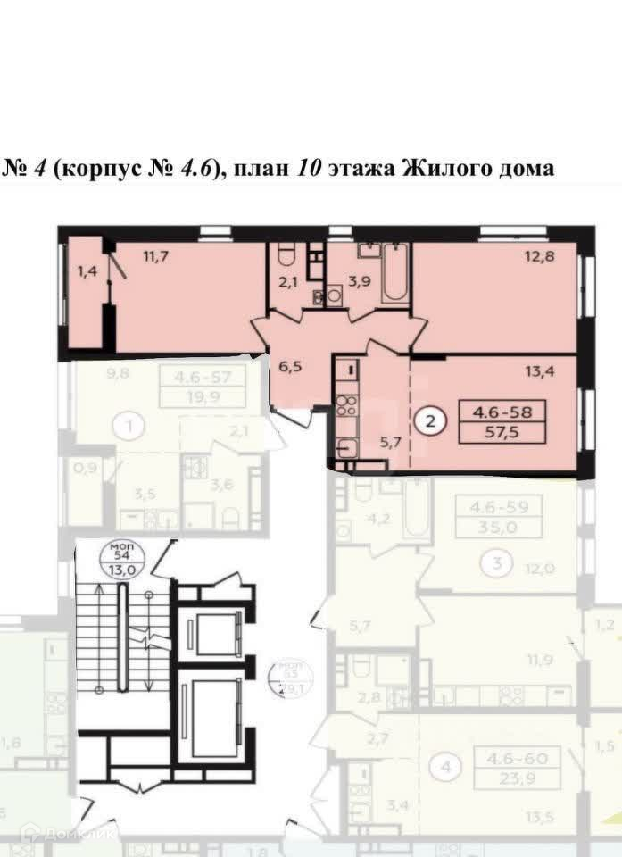 Общая площадь 57.5 м2