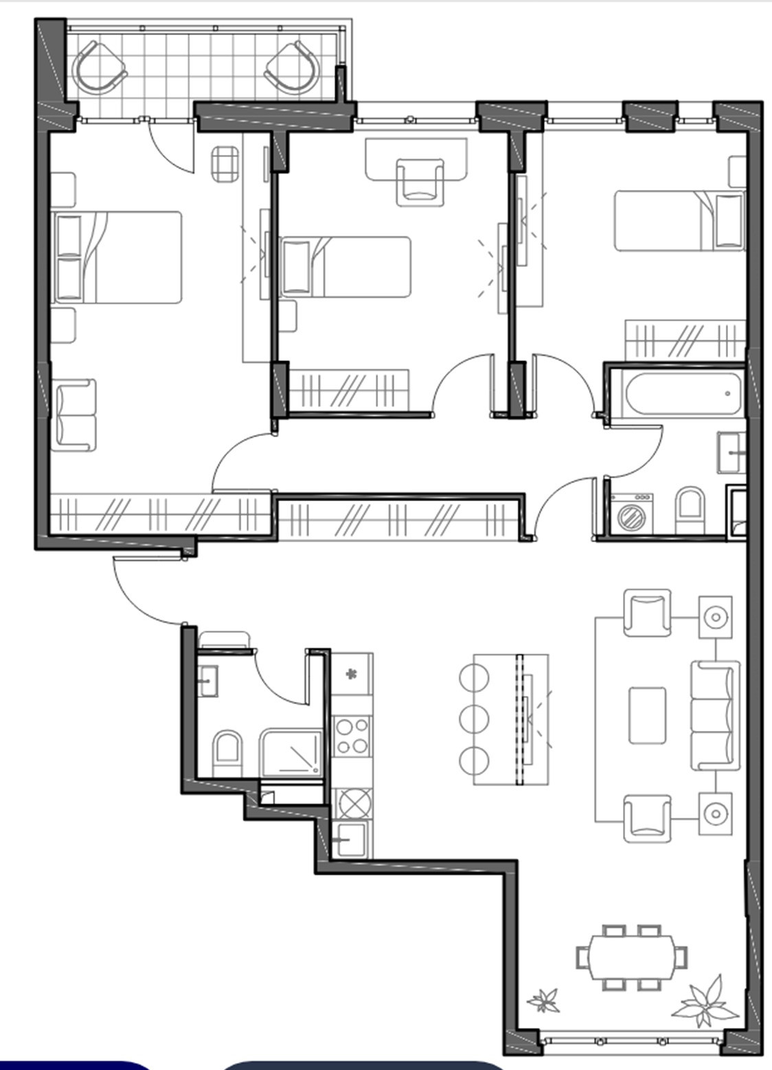 -три спальни;