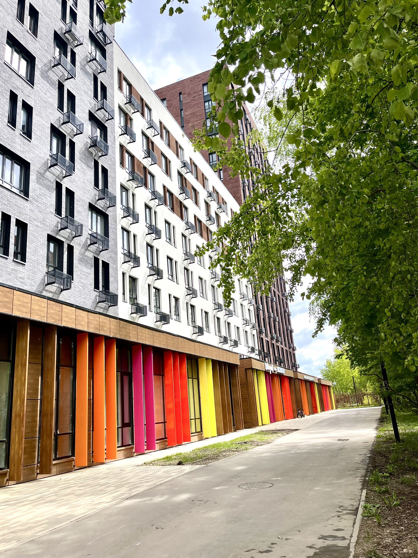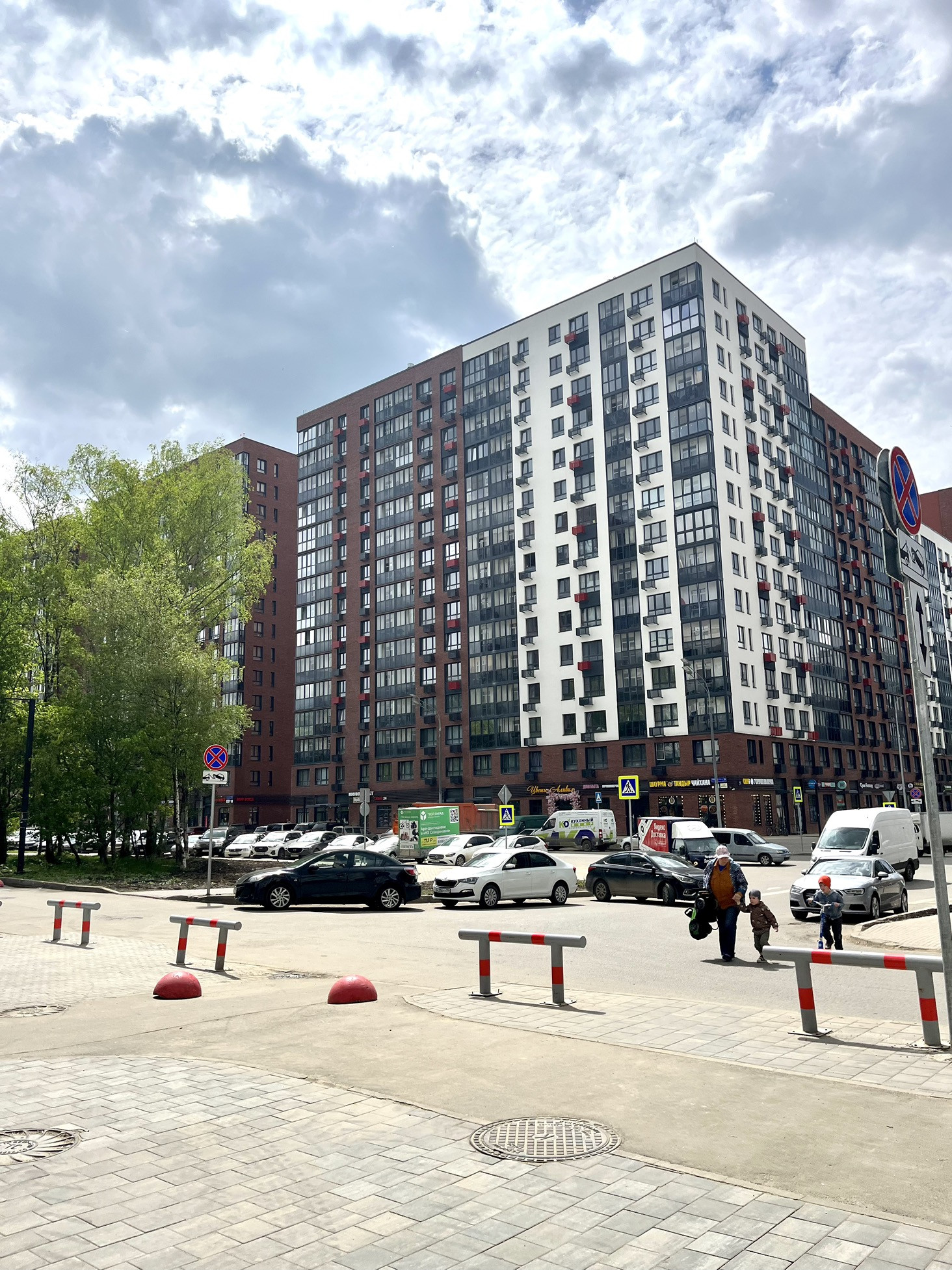 Большое количество кафе, магазинов, детских клубов.