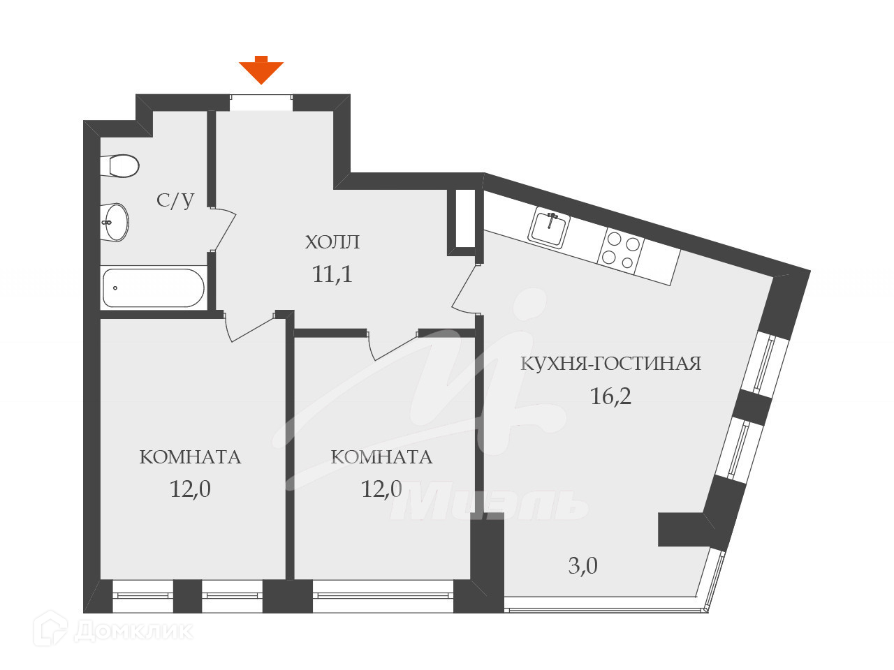 Площадь кухни 16.2 м2
