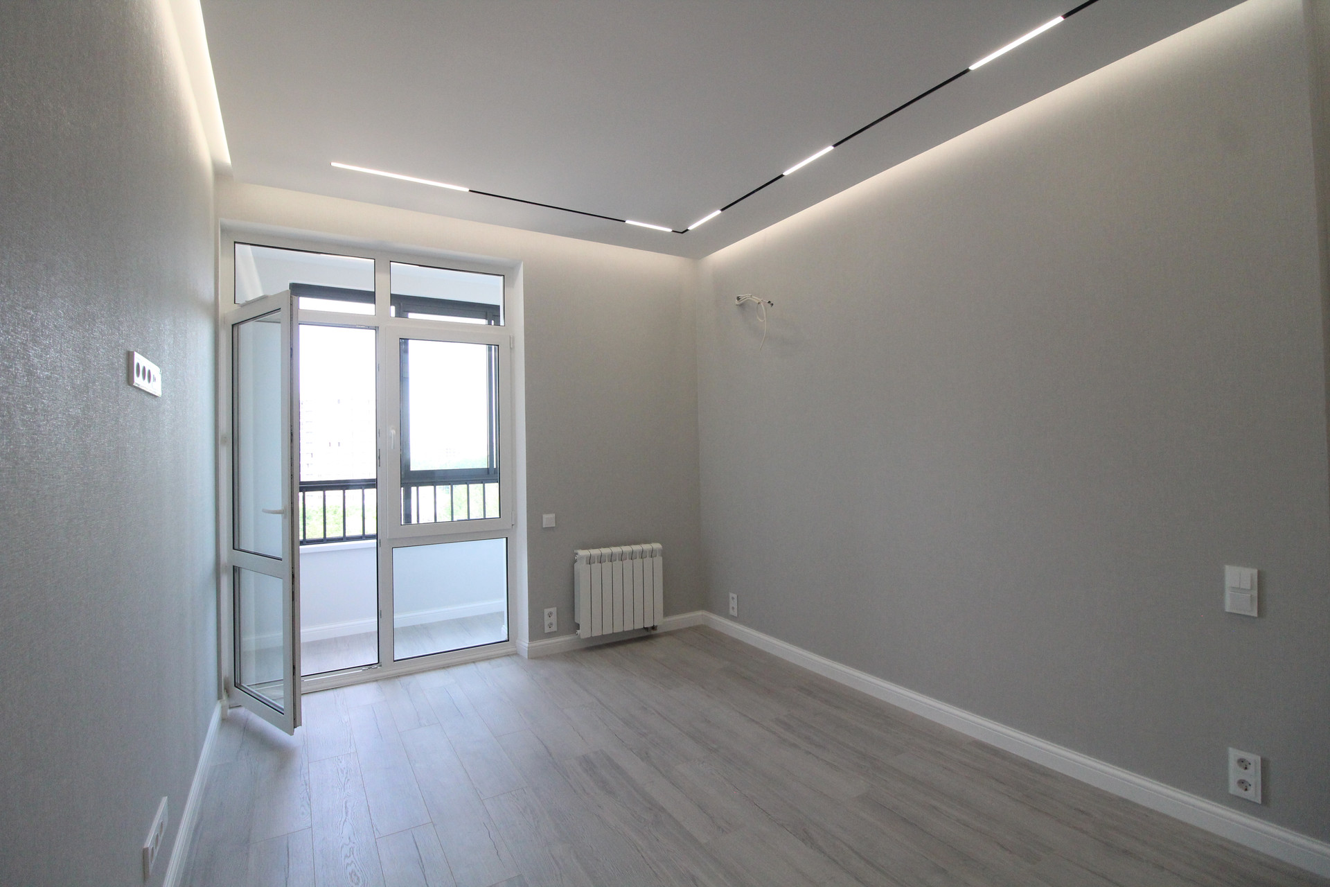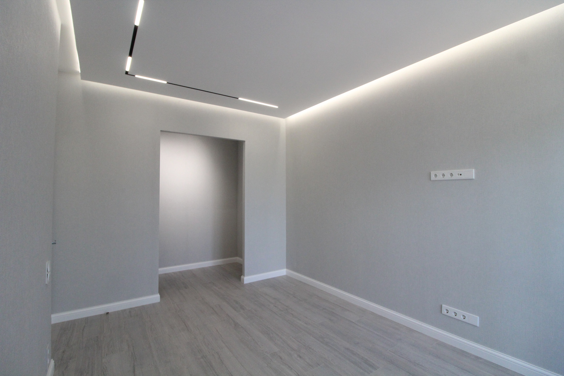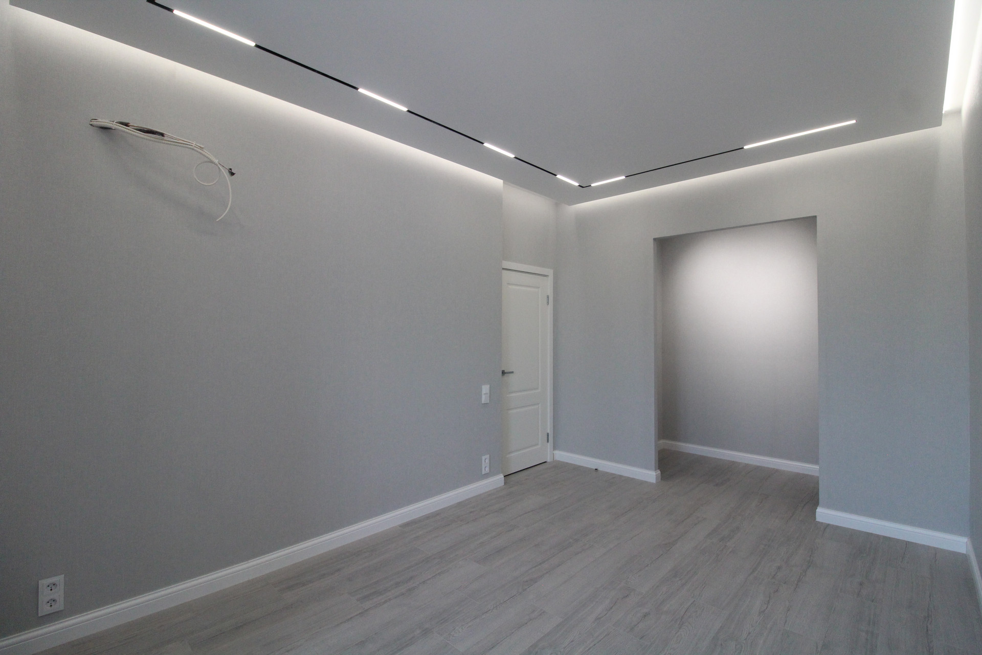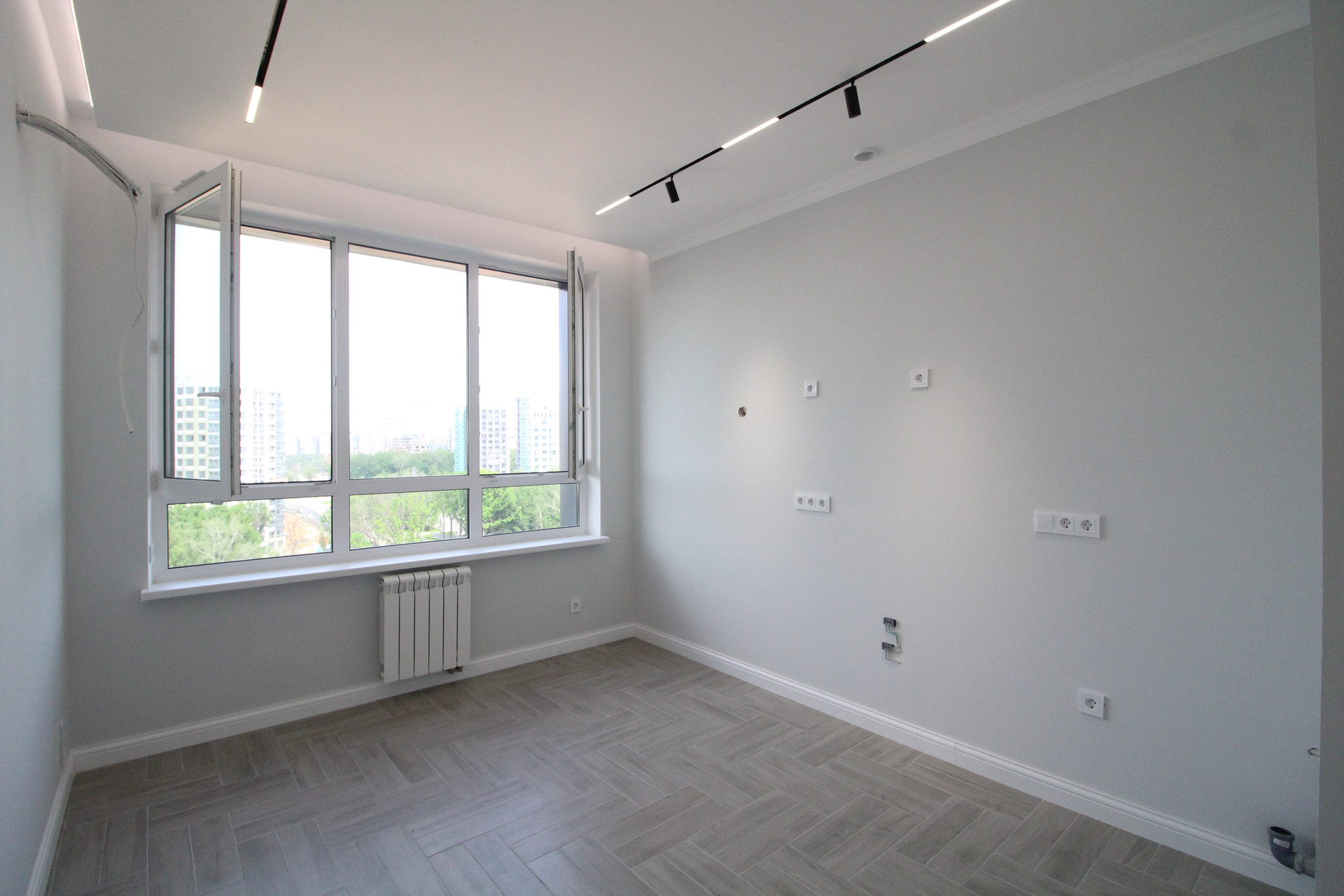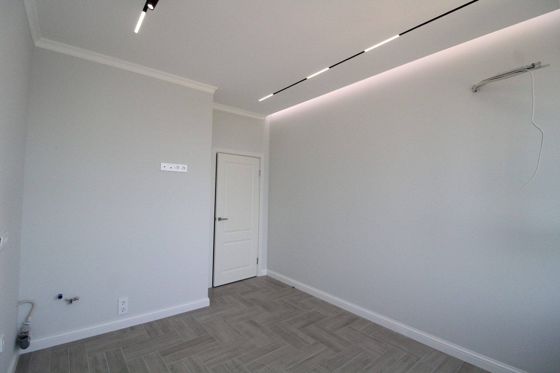 В квартире уже установлены: душевая, унитаз, тумба с раковиной. В ванной и туалете пол и стены  керамогранит.  Межкомнатные двери Union, инсталляция Geberit, автоматика АВВ, розетки и выключатели Schneider Electrik (обрамление стекло), тёплые полы в ванной и туалете (регулятор электронный). Освещение в ванной и с/у бренда SWG и Ledron. Основное освещение по квартире сделано на магнитной шине с магнитными светильниками: в комнате, на кухне, в прихожей. В комнате парящий потолок, по периметру которого расположена светодиодная лента, которая затемняется от диммера с умным ключом. Освещение в холодных тонах и свет сделан дневной (нейтральный) 4000К.
