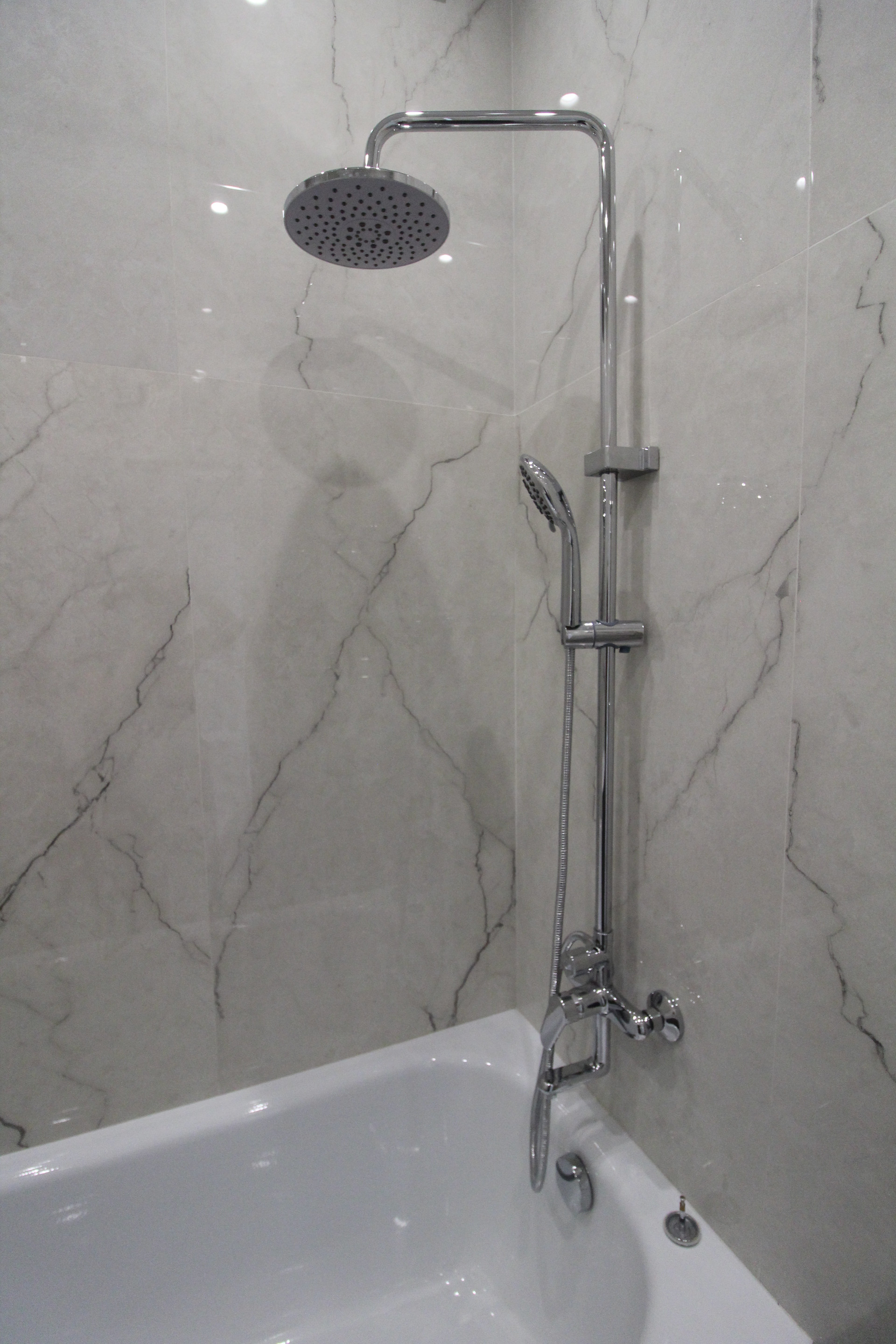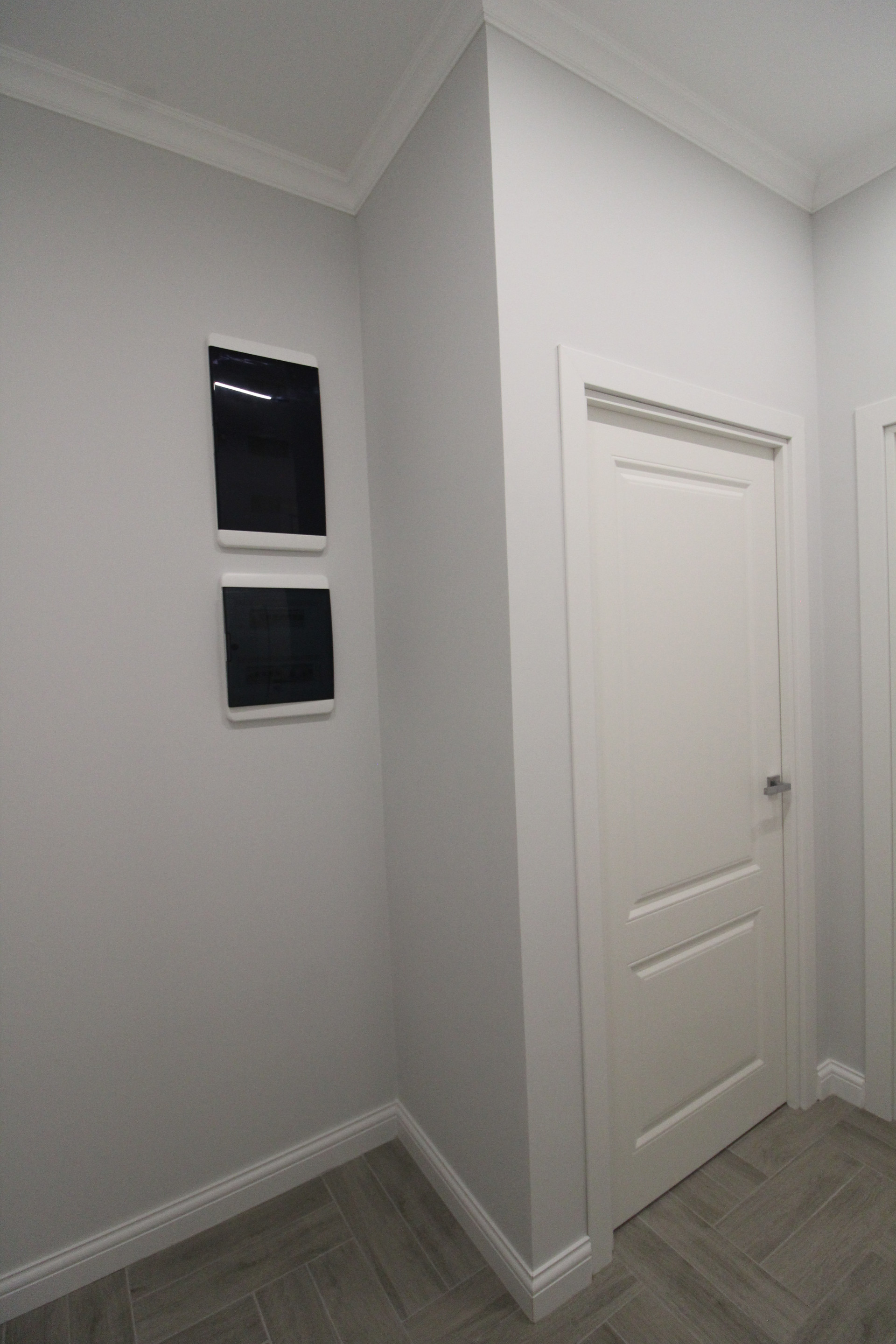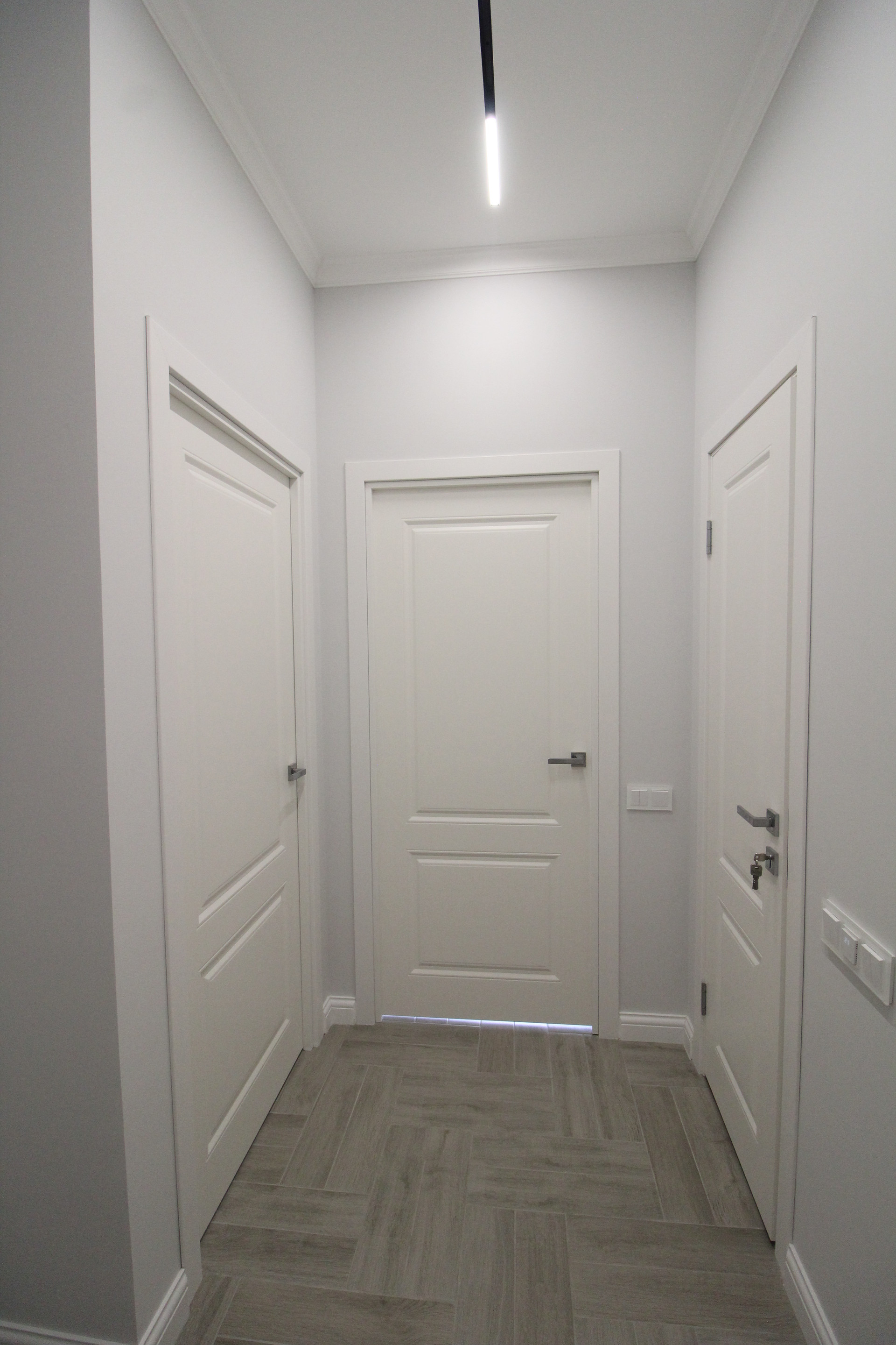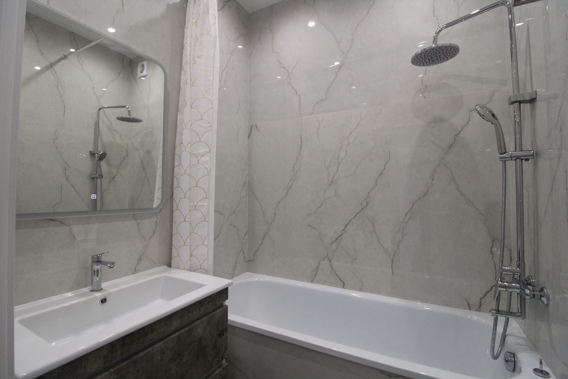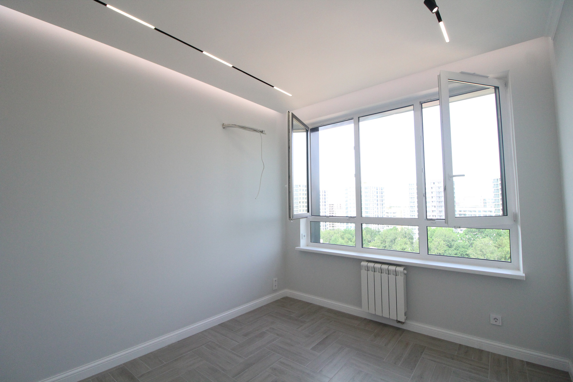В квартире уже установлены: душевая, унитаз, тумба с раковиной. В ванной и туалете пол и стены  керамогранит.  Межкомнатные двери Union, инсталляция Geberit, автоматика АВВ, розетки и выключатели Schneider Electrik (обрамление стекло), тёплые полы в ванной и туалете (регулятор электронный). Освещение в ванной и с/у бренда SWG и Ledron. Основное освещение по квартире сделано на магнитной шине с магнитными светильниками: в комнате, на кухне, в прихожей. В комнате парящий потолок, по периметру которого расположена светодиодная лента, которая затемняется от диммера с умным ключом. Освещение в холодных тонах и свет сделан дневной (нейтральный) 4000К.