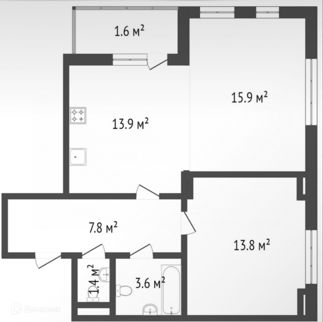 Жилая площадь 43.9 м2