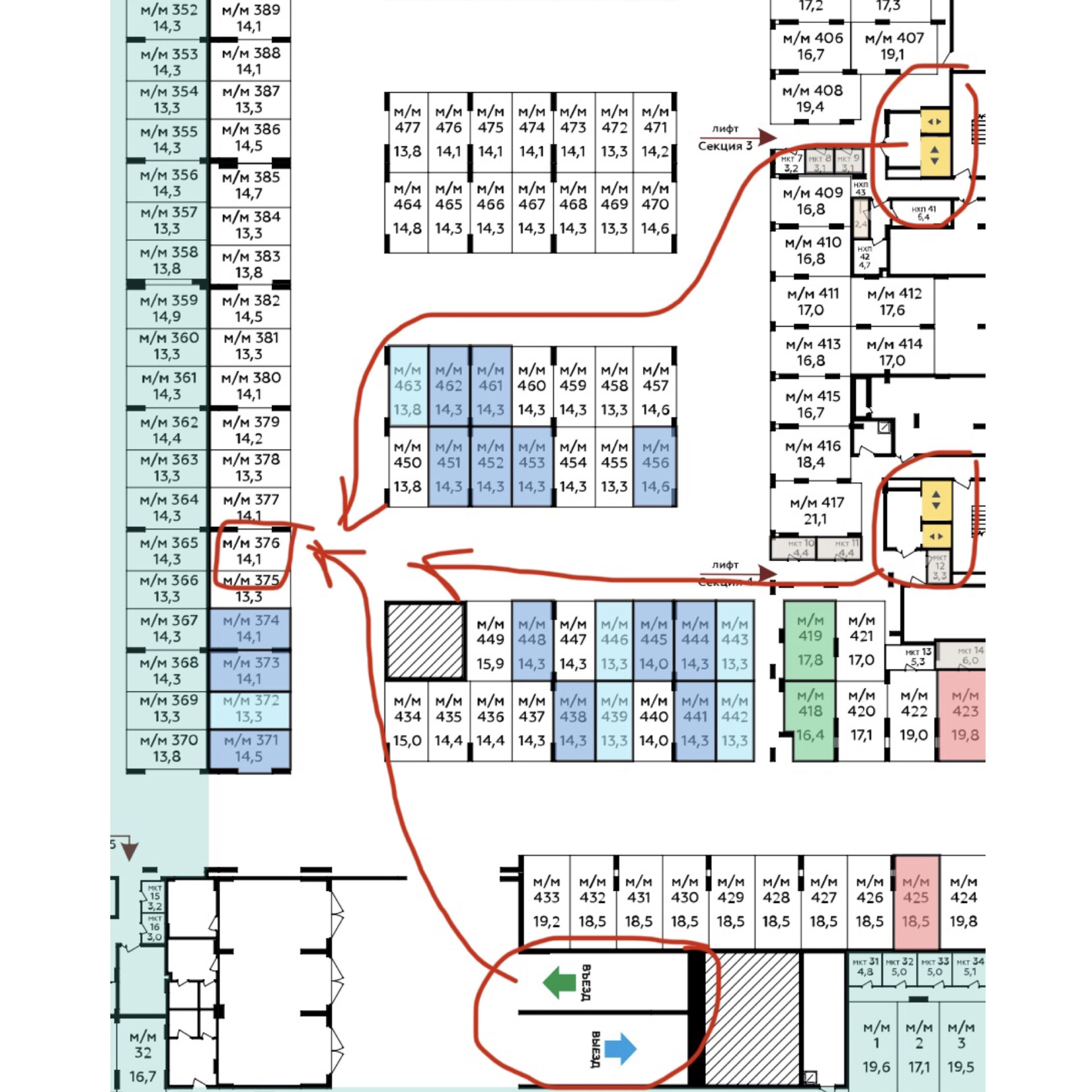 В продаже также еще одно машино-место с аналогичными характеристиками в том же секторе.