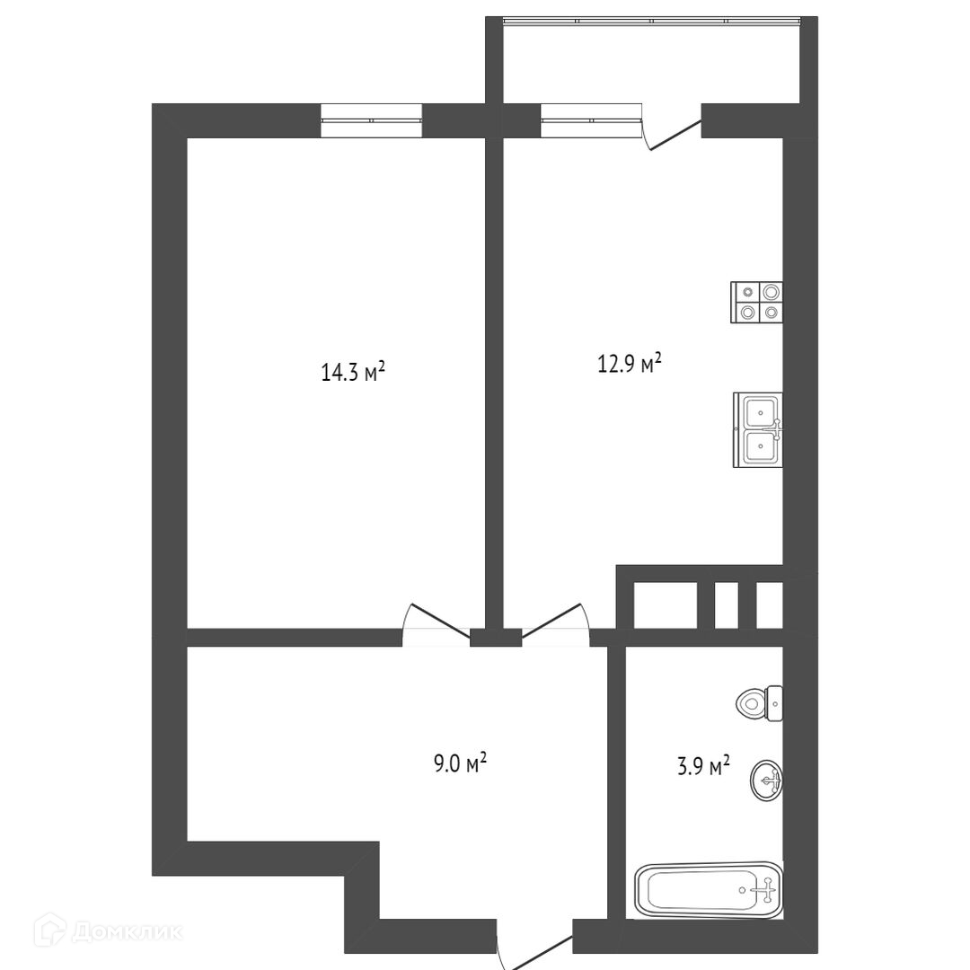 Общая площадь 39 м2