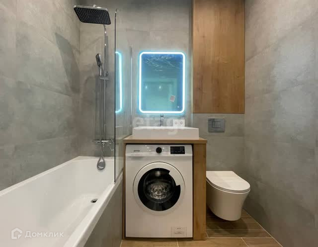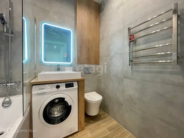- Вся необходимая мебель и техника для проживания: двуспальная кровать, большое количество мест для хранения, диван, кондиционер, духовой шкаф, стиральная машина и холодильник