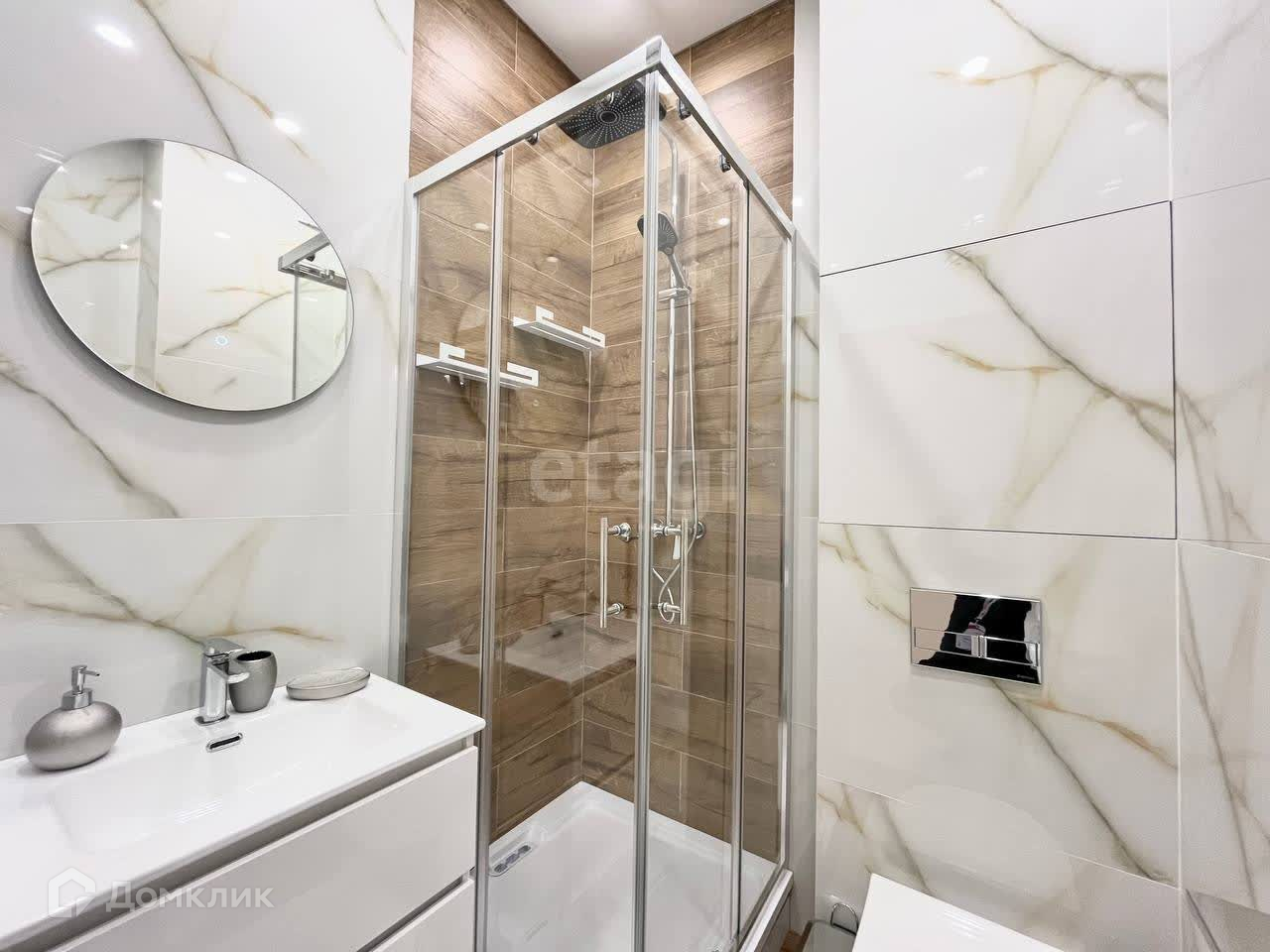 - Совмещенный санузел с душем, зеркало с подсветкой, стиральная машина;