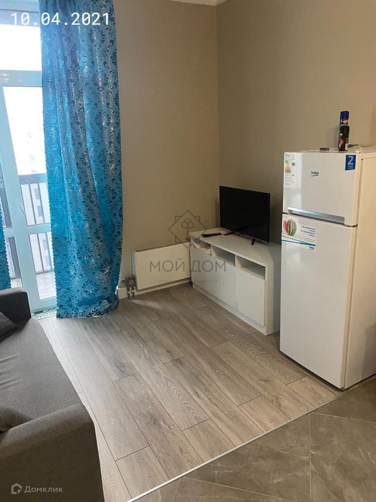 Район с развитой инфраструктурой. Есть просторная лоджия. В зоне кухни холодильник, обеденная зона, кухонный гарнитур, плита стекло керамика. В зоне комнаты выход на лоджию, диван, шкаф, телевизор . небольшой коридор, с/у совмещен, ванна, стиральная машина.